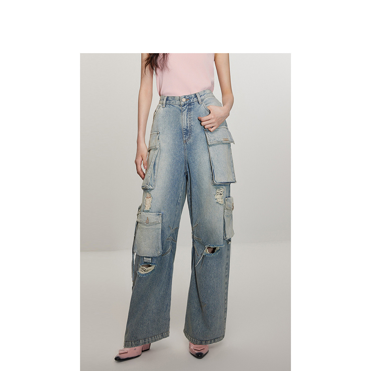 春装 工装裤阔腿牛仔裤女初破洞直筒宽松显瘦 940815