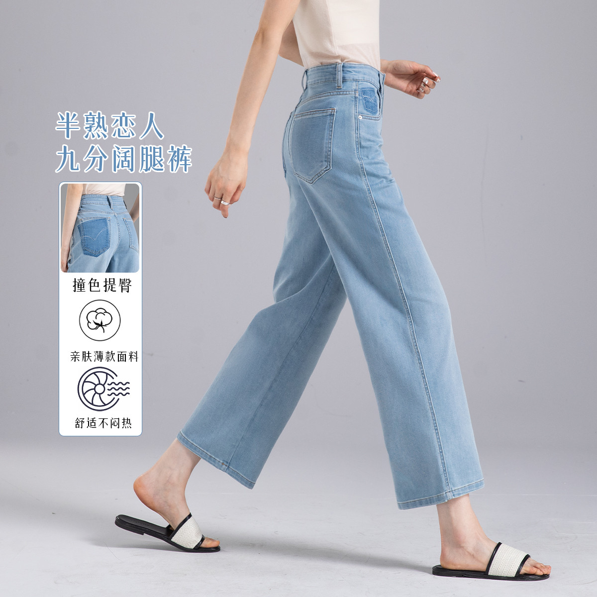 【薄荷曼波莱赛尔】春夏款牛仔裤女透气轻薄百搭八分阔腿裤女 039425
