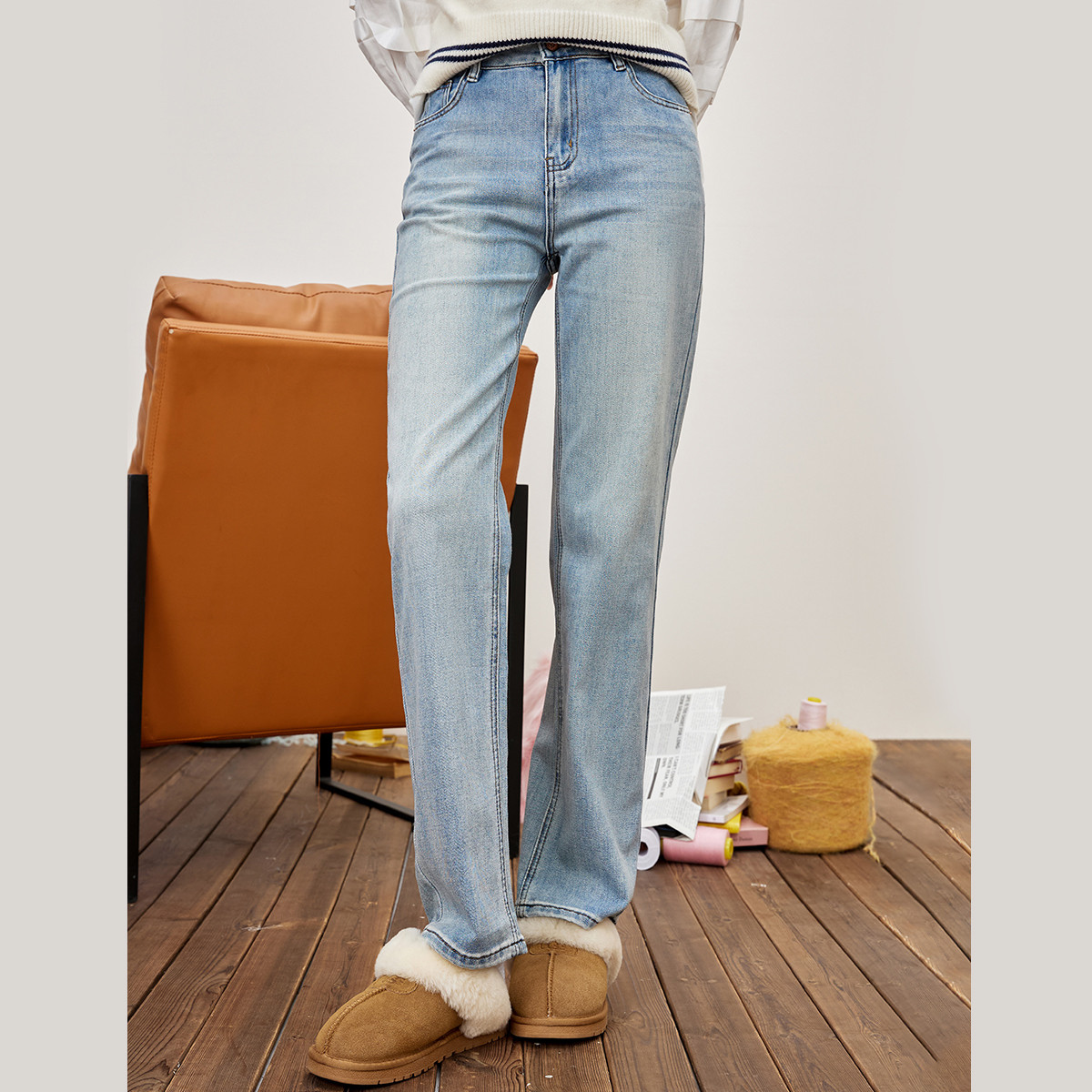 地素秋冬加绒牛仔长裤美式复古高腰阔腿长裤女 529995