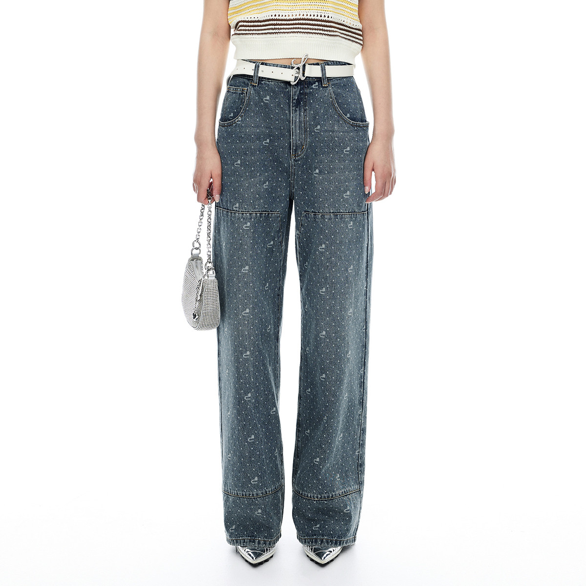地素牛仔阔腿裤少女感解构趣味印花设计女 848587