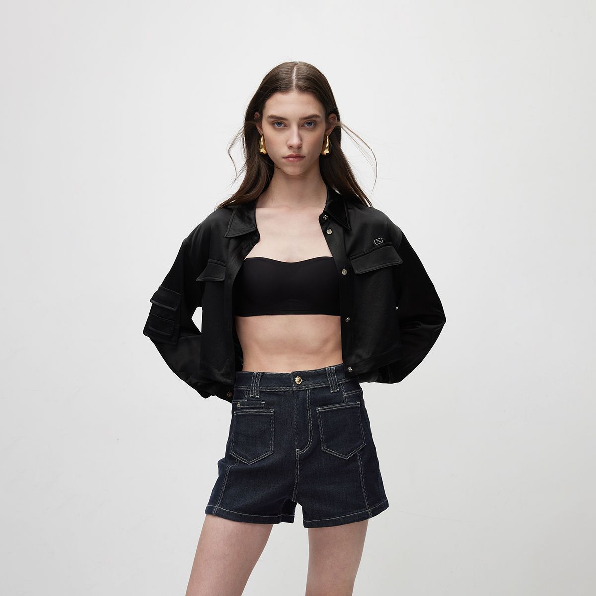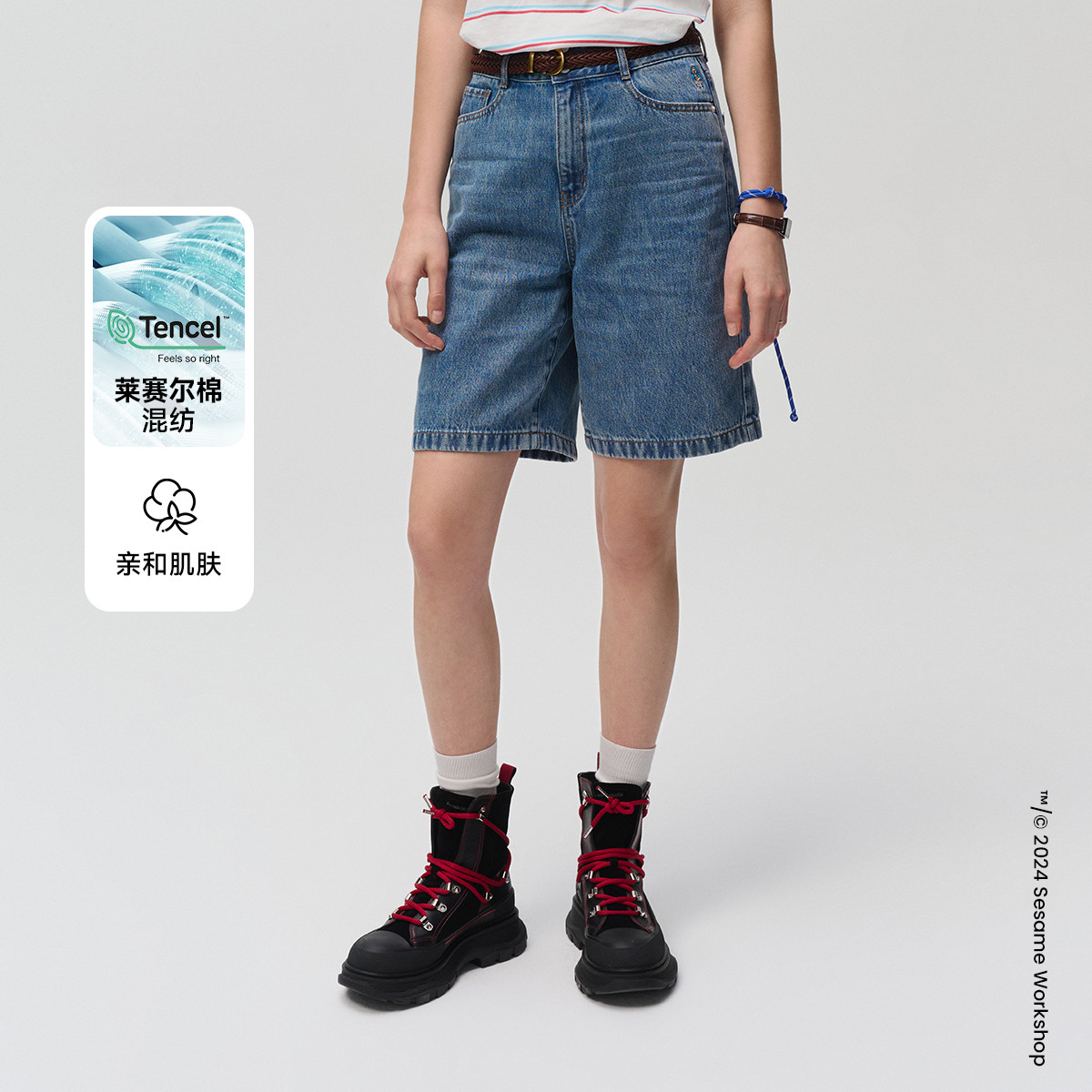 【棉+莱赛尔】小熊&芝麻街联名春夏J简约短裤牛仔裤女 882625