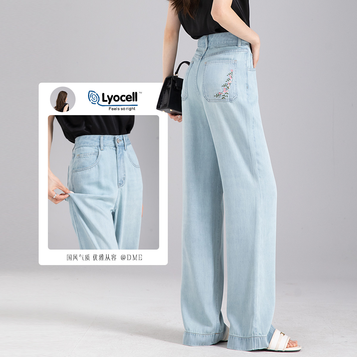【莱赛尔垂顺阔腿裤】春季女式牛仔裤宽松显瘦直筒拖地长裤女 521281