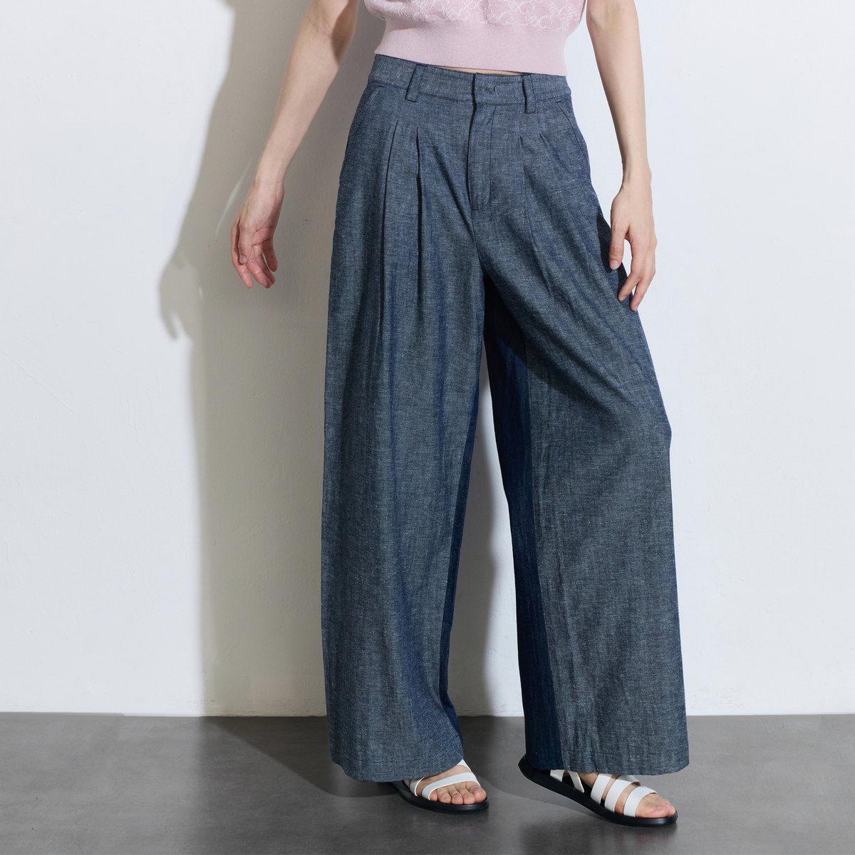 【100%棉】纯色简约设计舒适阔腿裤夏季女式牛仔裤 360093