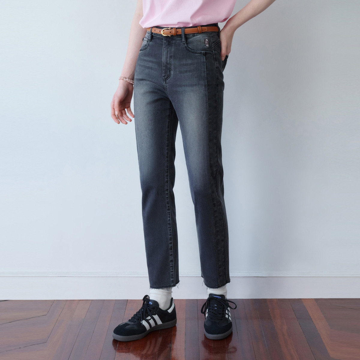 小熊凉感修身高腰裤复古水洗牛仔裤长裤 254465