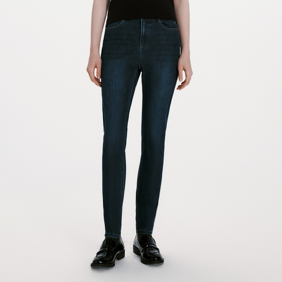 小熊女装春季牛仔裤简约休闲高腰修身基础烟管裤长裤 012225