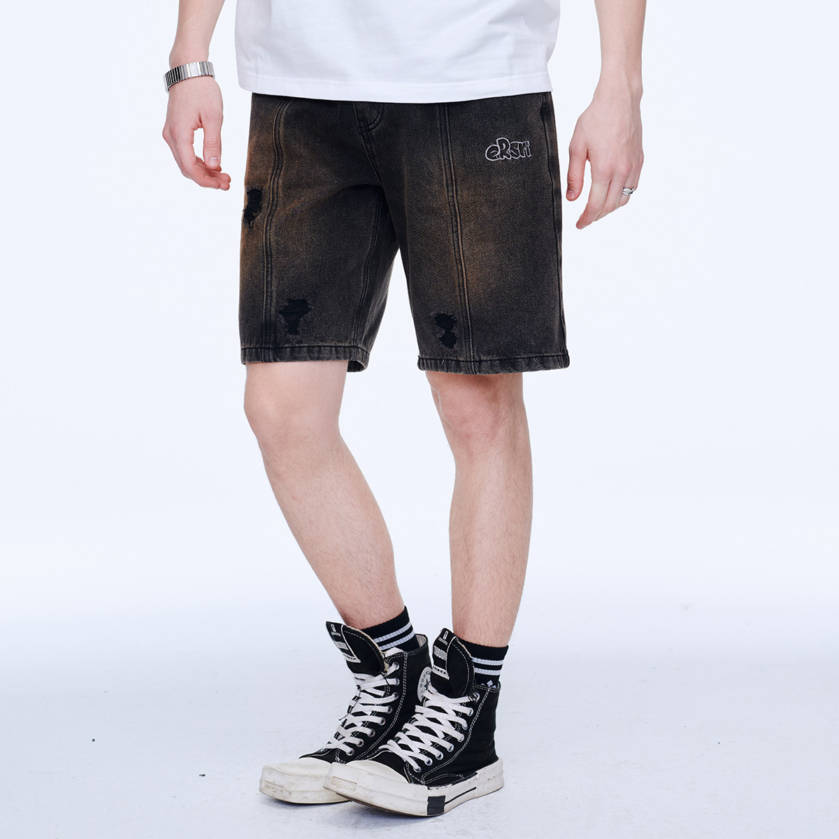 做旧牛仔短裤潮牌宽松情侣复古五分裤街头潮牌直筒裤 723863