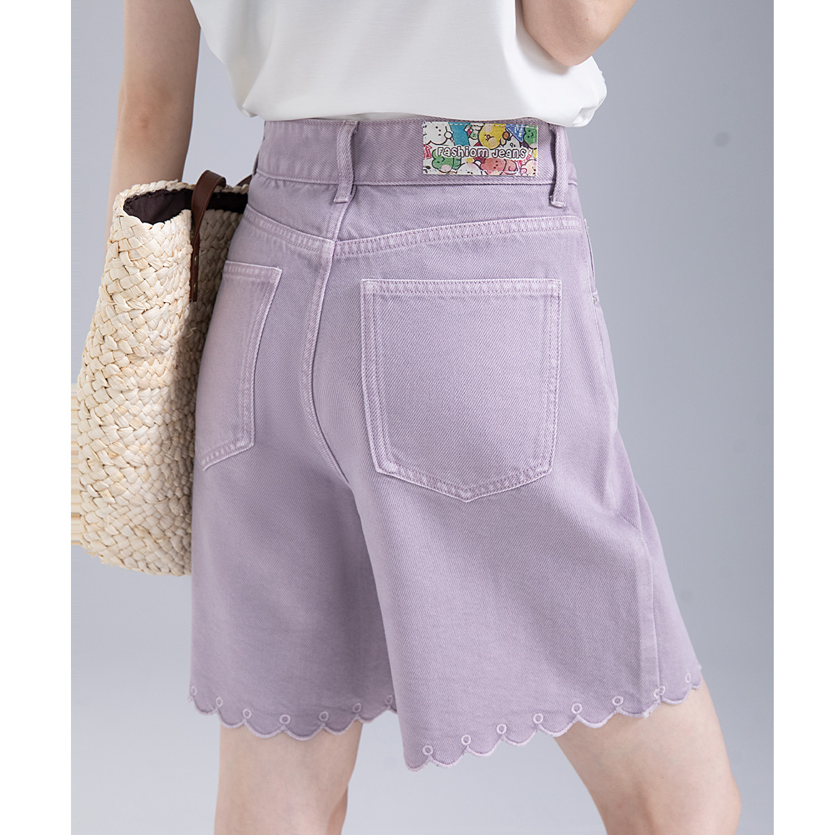 【紫定会喜欢】夏季热销牛仔短裤女高腰A字五分阔腿花边短裤女 836417