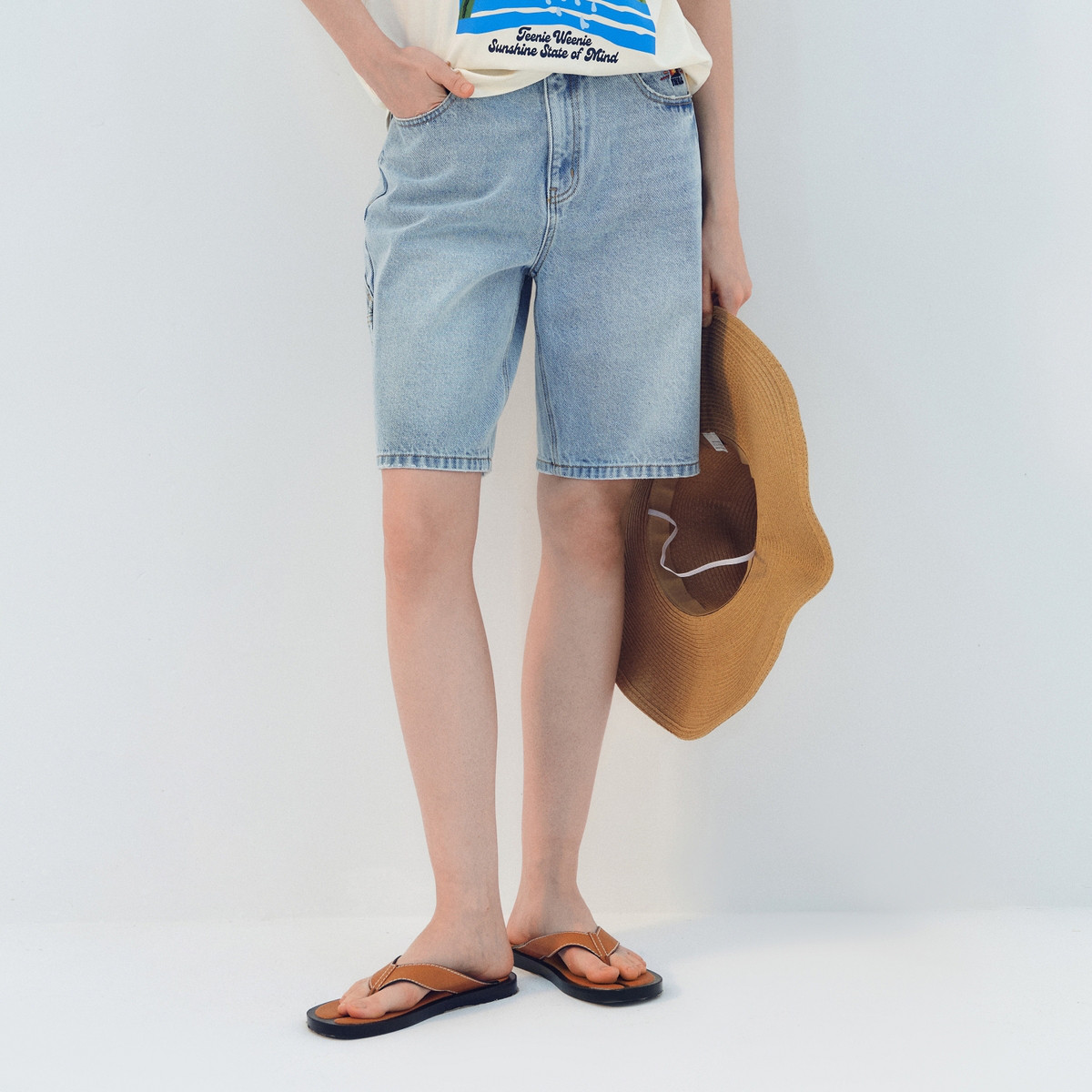 牛仔裤小熊女装款夏装复古斜纹肌理感短裤微A牛仔裤 917121