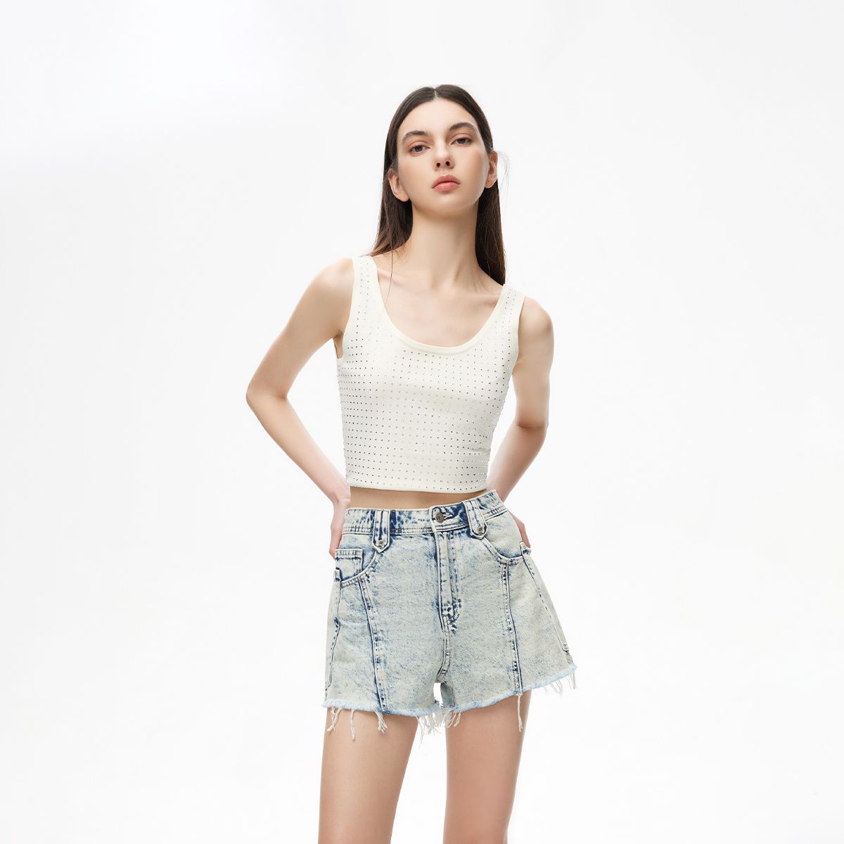 高腰磨破短款牛仔裤女2025夏不规则毛边破洞设计短裤 094995