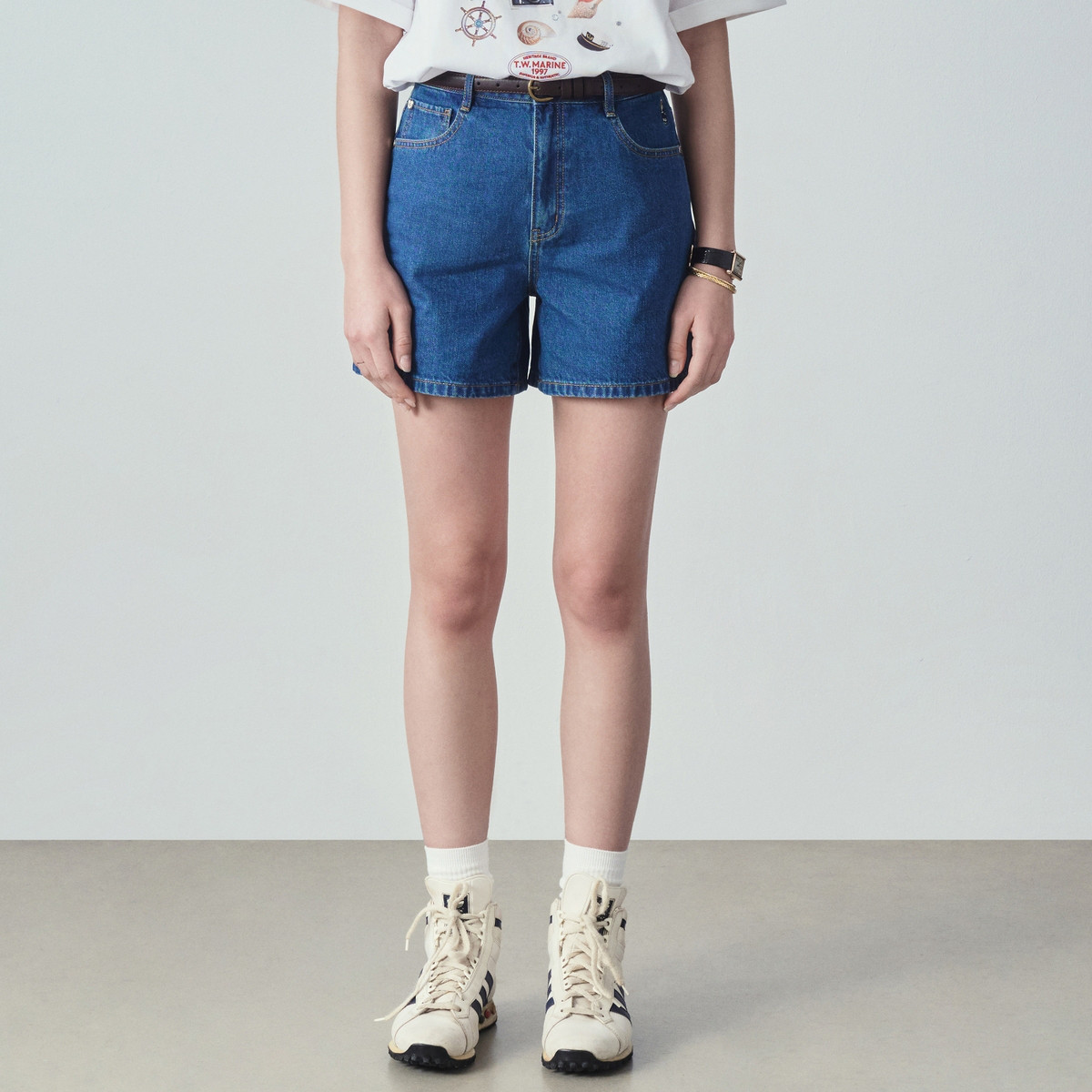 【高腰百搭】夏季含莱赛尔设计感腰带A字短款牛仔裤女 983898