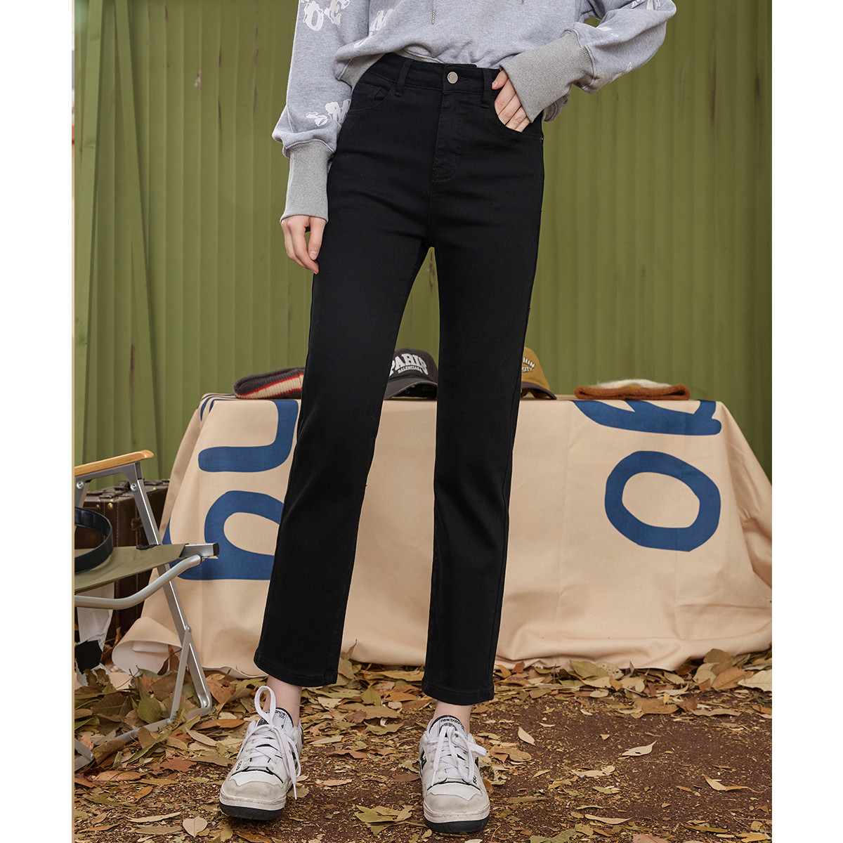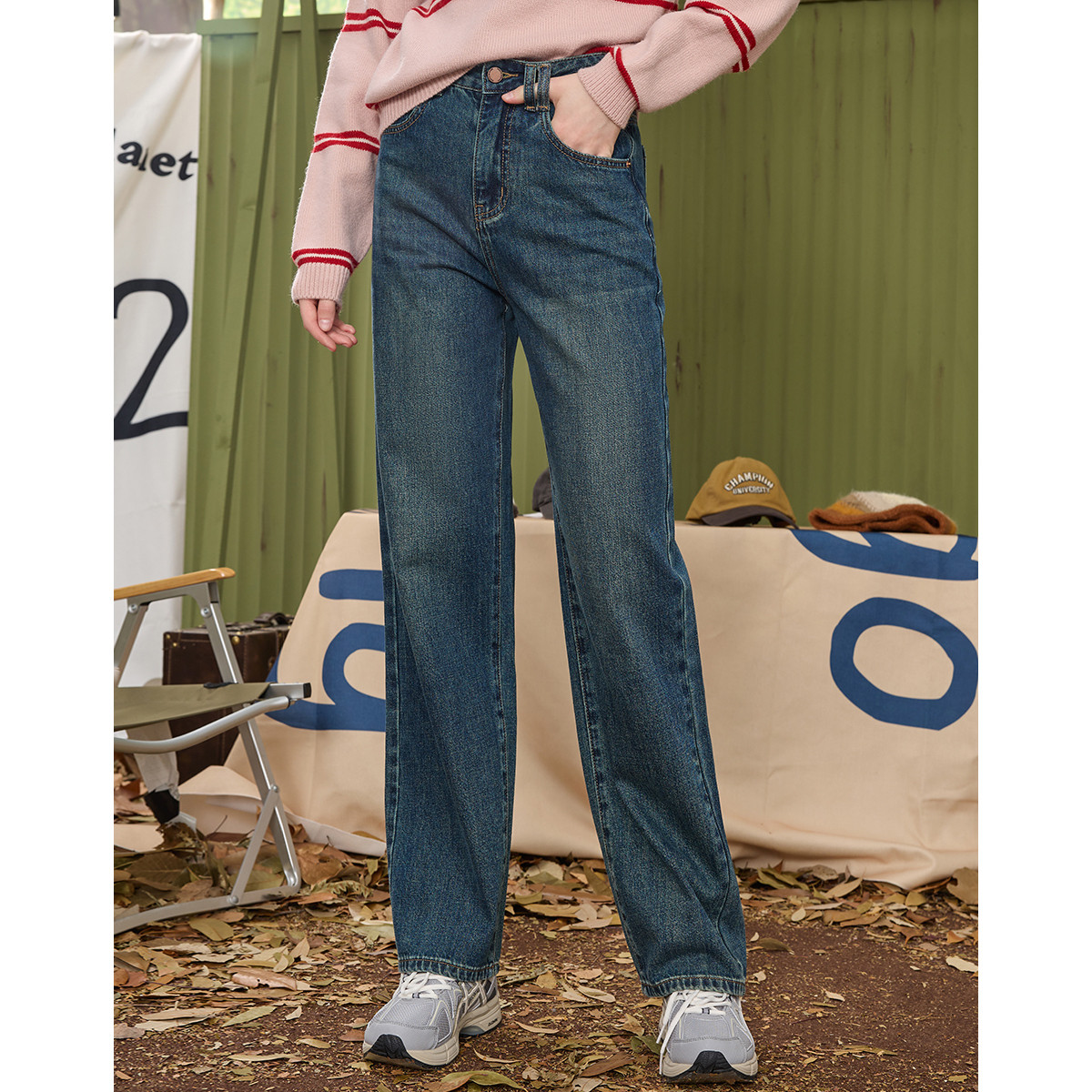 经典款街头风简约休闲直筒裤春季高腰百搭复古女式牛仔裤 076125