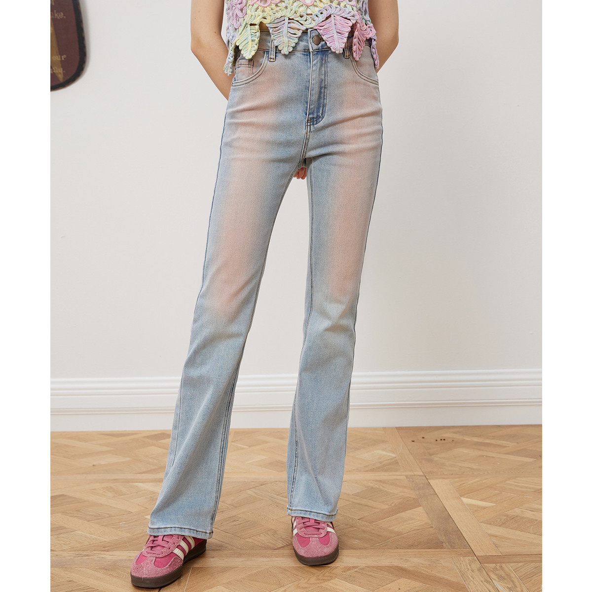 小众扎染复古设计微喇喇叭裤夏季高腰休闲遮肉女式牛仔裤 951837
