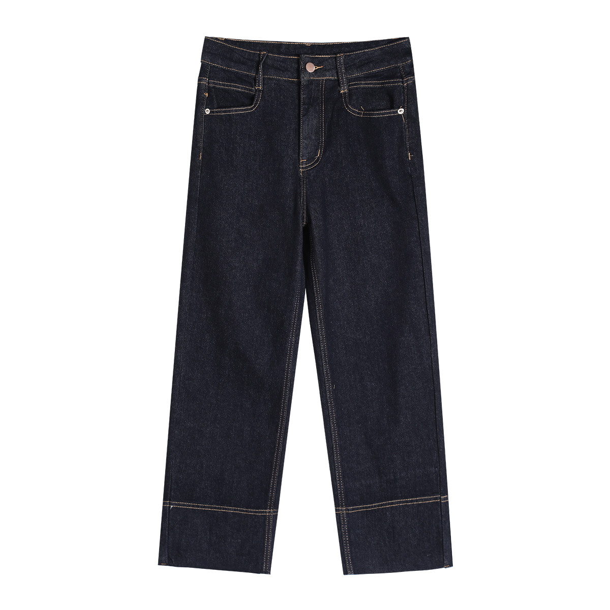 高腰休闲经典款九分直筒裤夏季百搭简约显瘦女式牛仔裤 017437