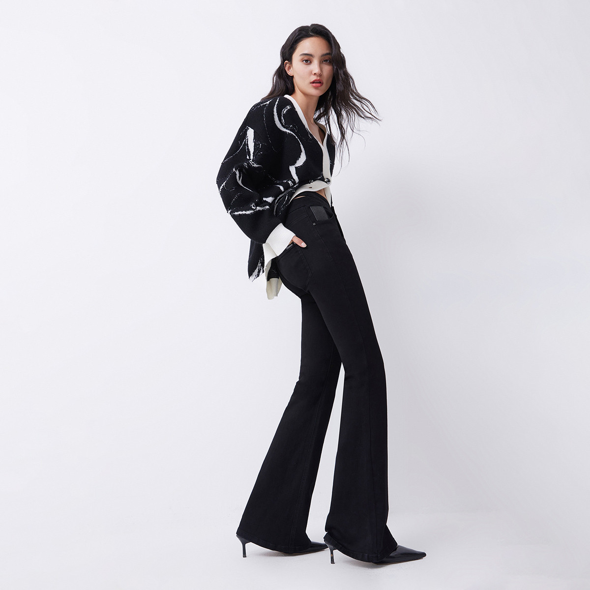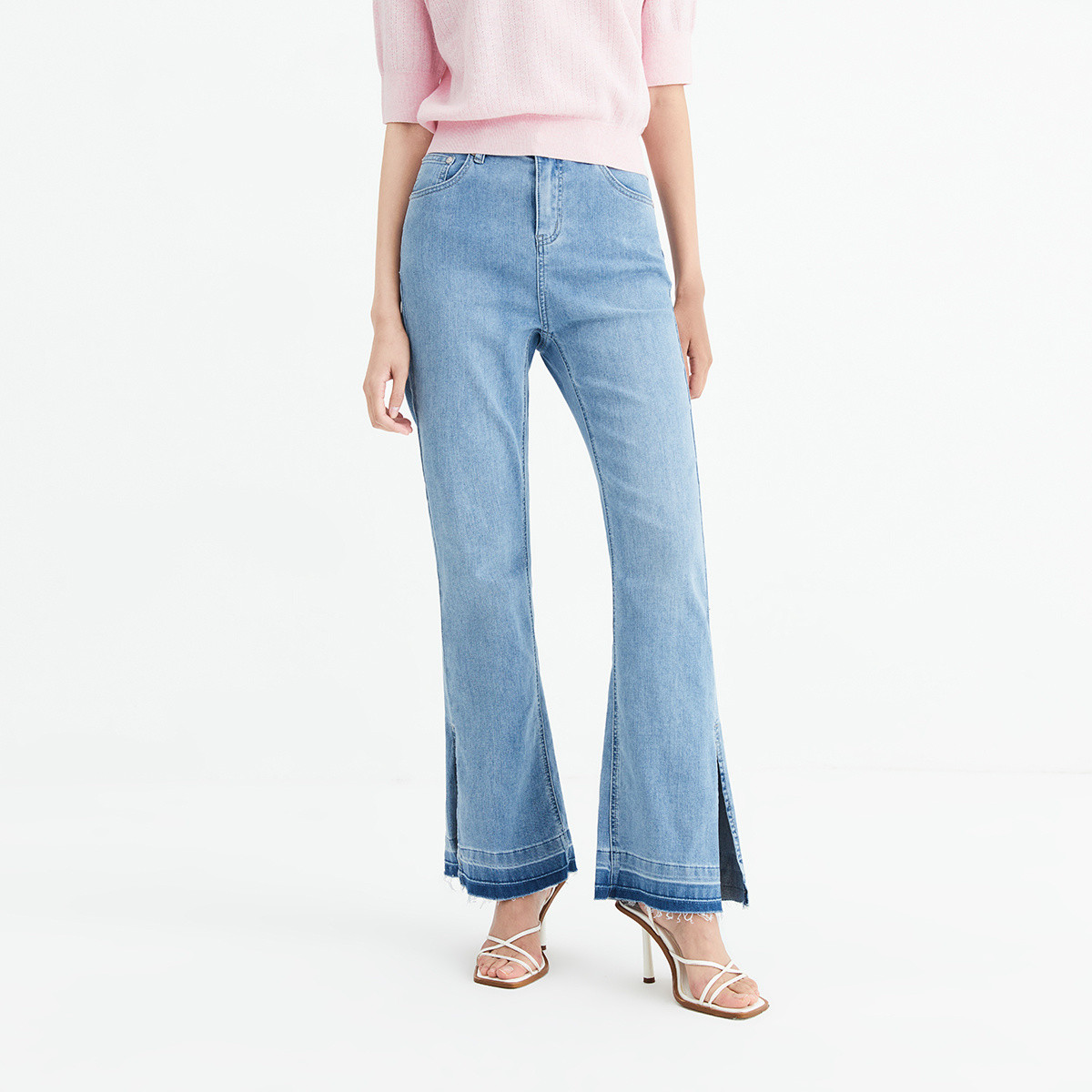 【商场同款】春季款时尚开叉休闲通勤复古微喇牛仔裤 391003