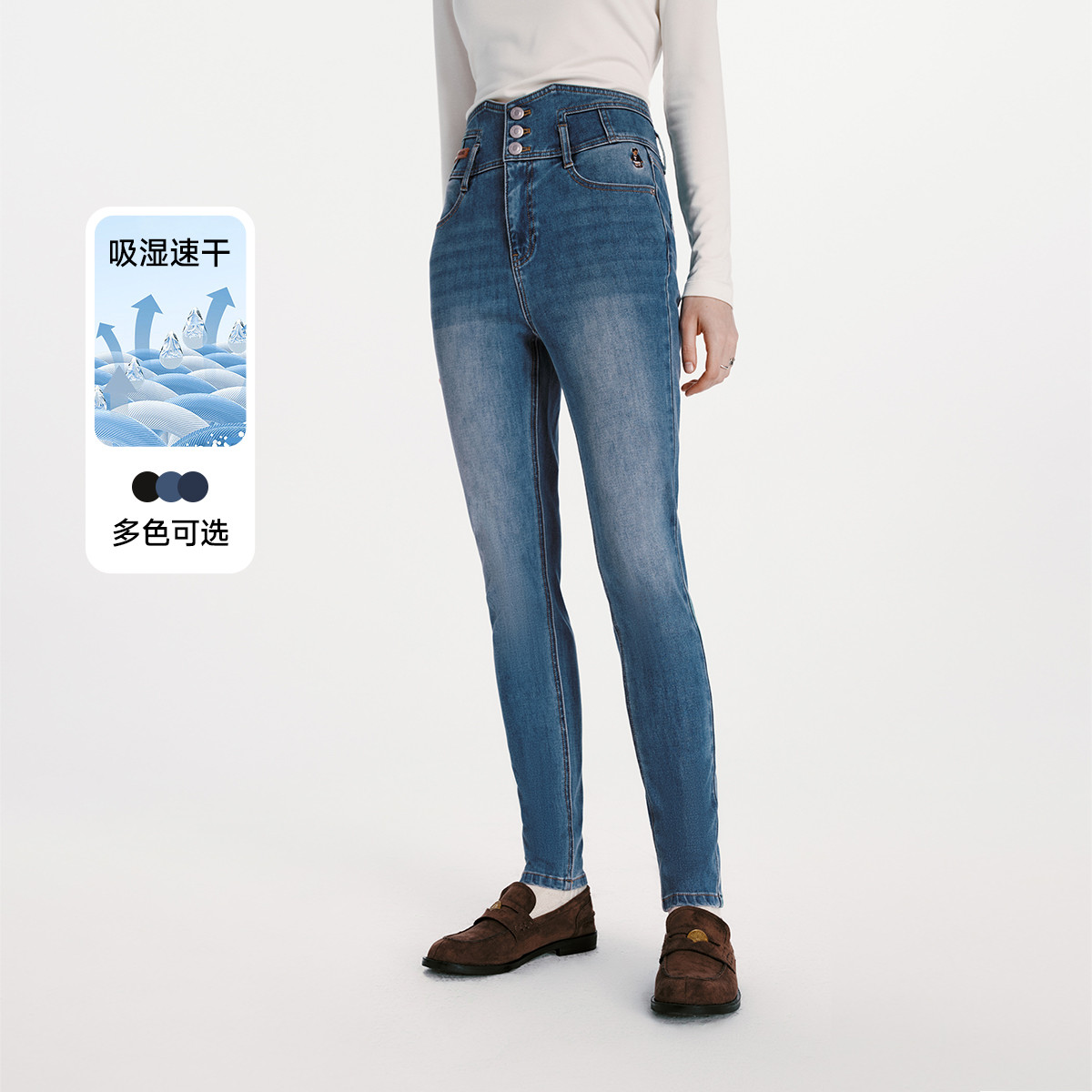 小熊凉感修身高腰裤复古水洗牛仔裤长裤 242177