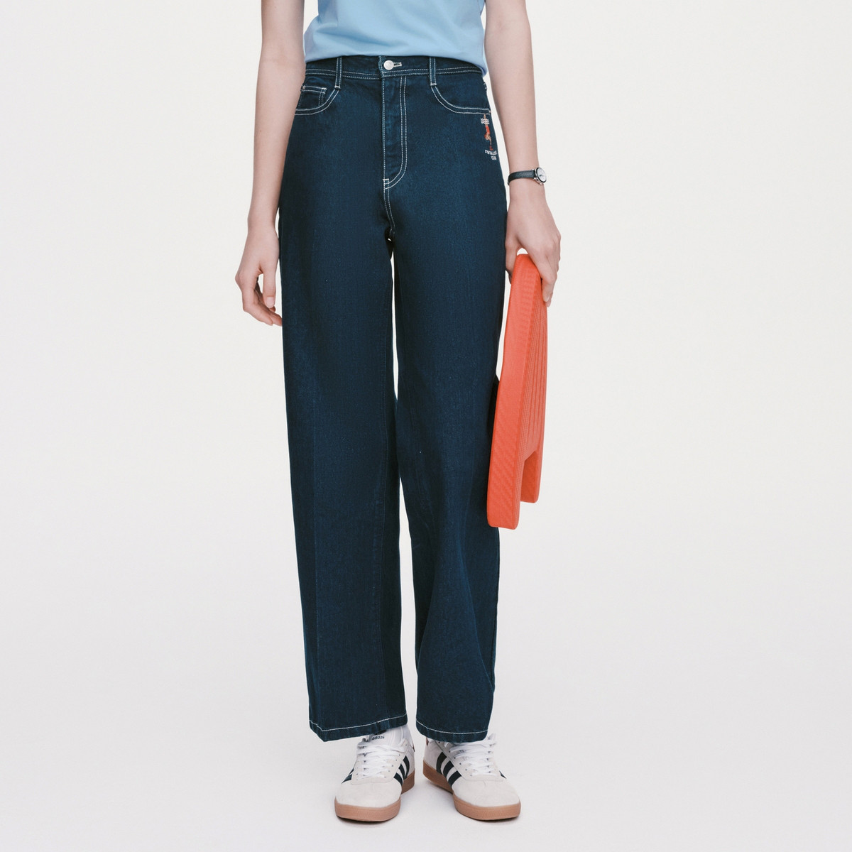 小熊简约时尚宽松阔腿牛仔裤休闲通勤长裤女 186561