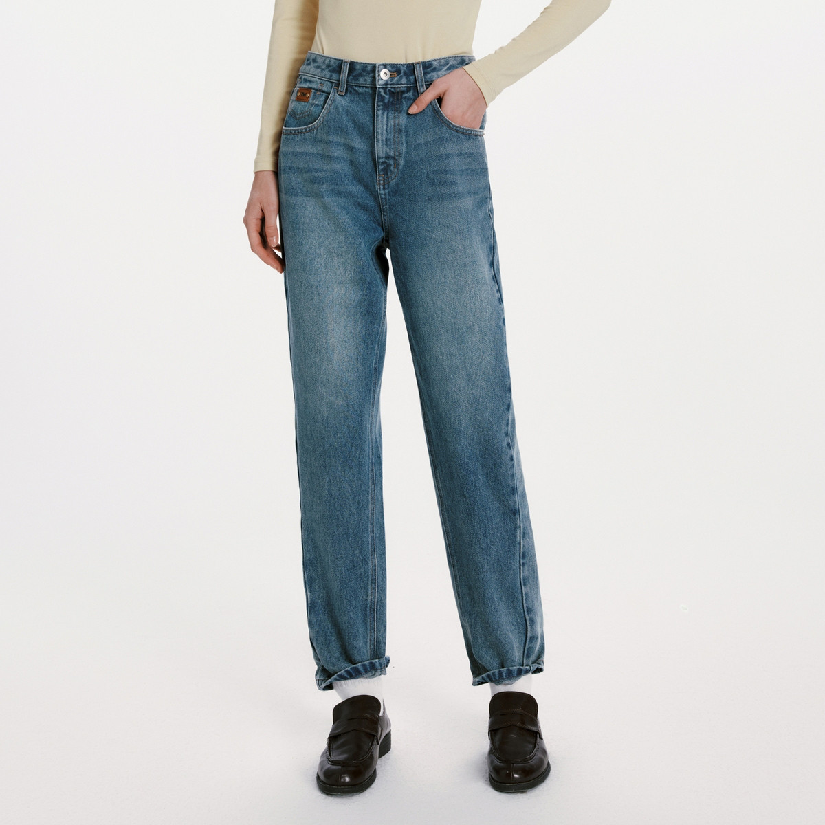 小熊女装复古牛仔裤老爹裤休闲舒适长裤 602625
