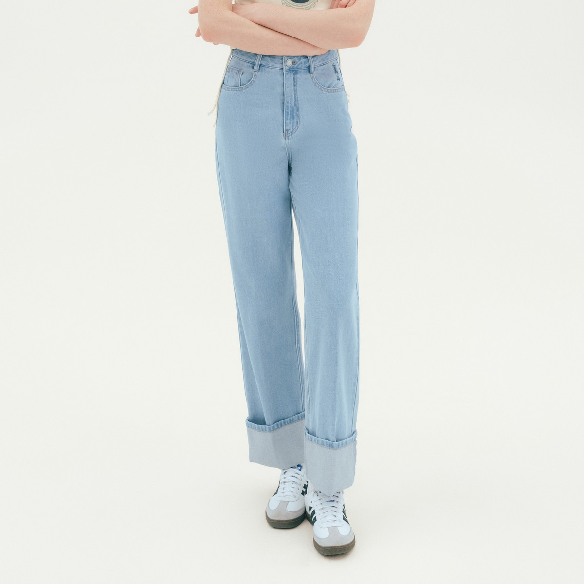 【浅色水洗】牛仔裤女高腰水洗阔腿裤休闲显瘦舒适 231889
