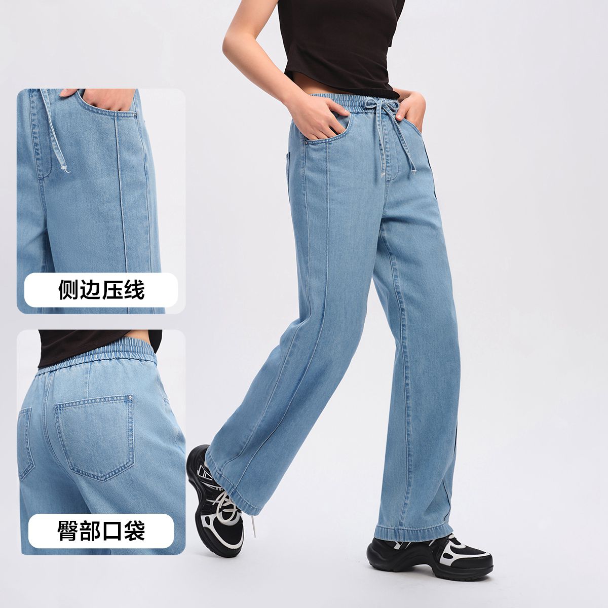 【莱赛尔垂顺阔腿裤】春季女式牛仔裤宽松显瘦直筒拖地长裤女 521281