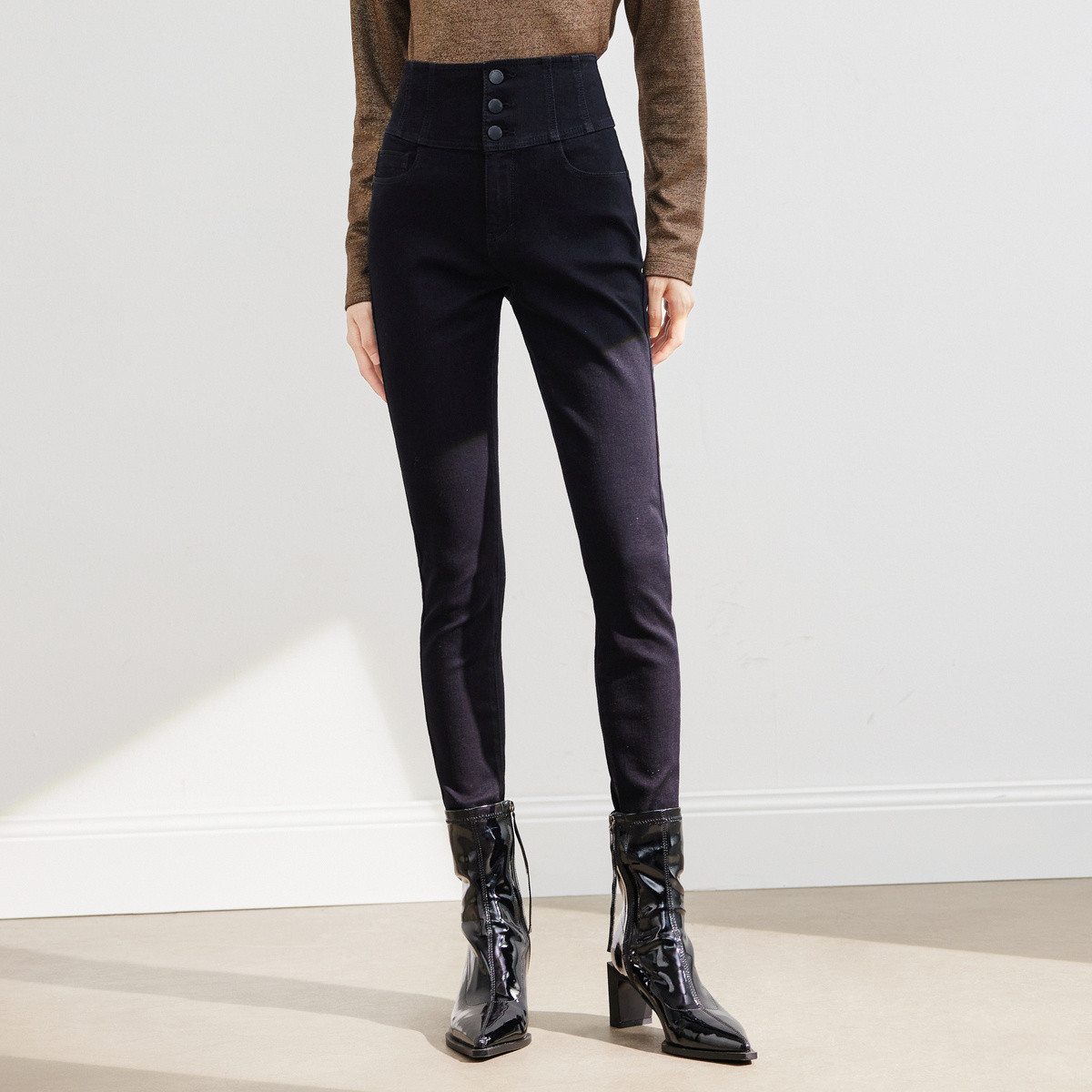 小熊复古牛仔裤长裤小脚裤黑色高腰铅笔裤女士 877441