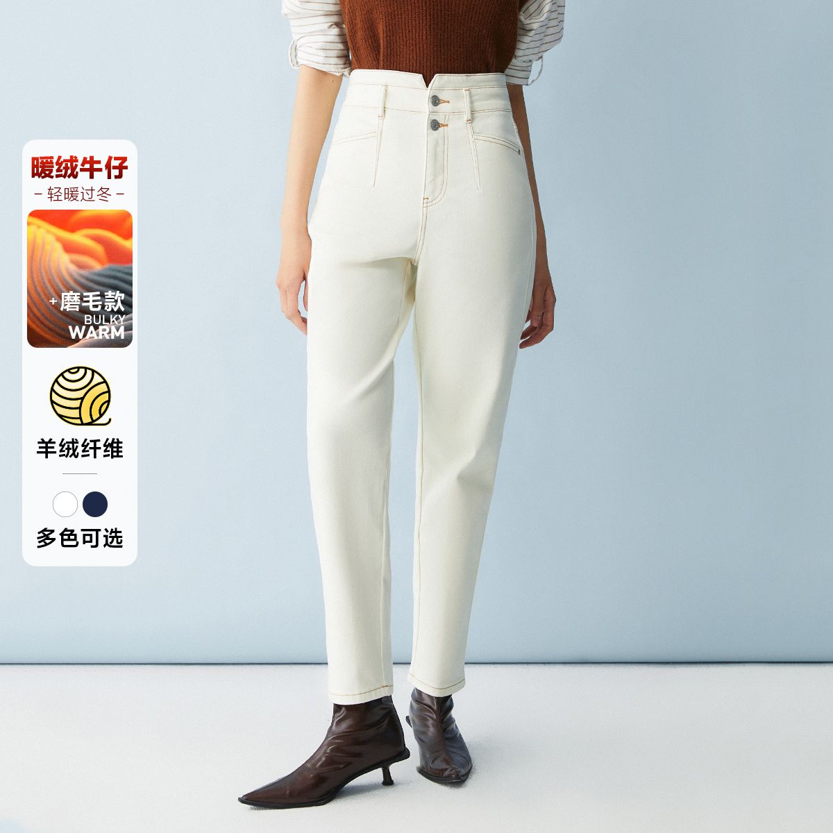 【含山羊绒】春夏高腰九分萝卜裤牛仔裤气质百搭时尚 651281