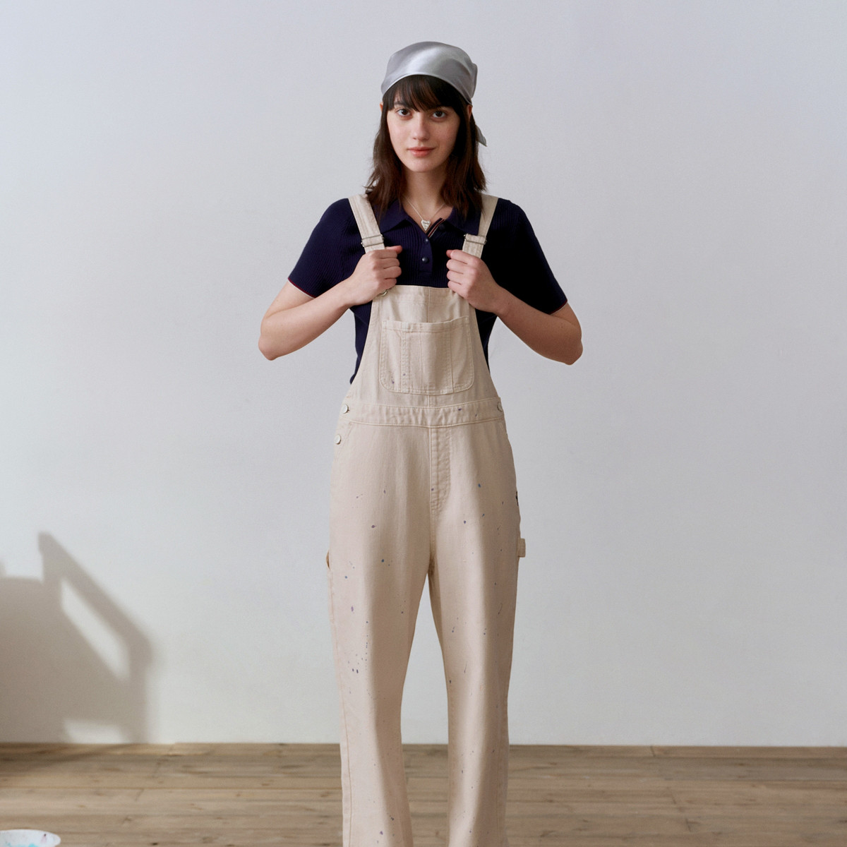 小熊春夏女士美式复古元气白色牛仔背带裤长裤 637697