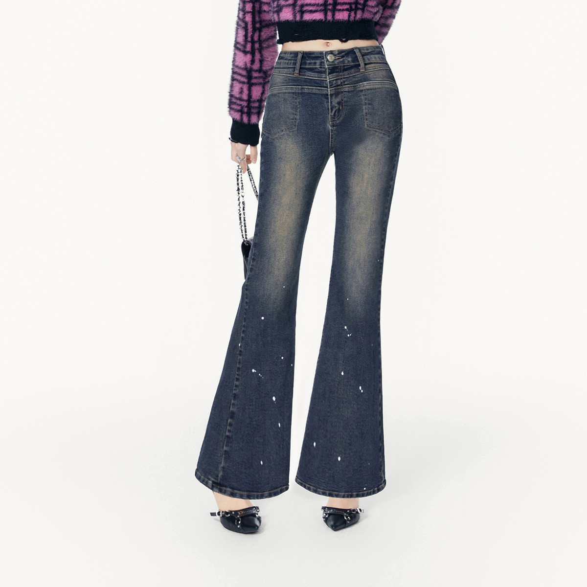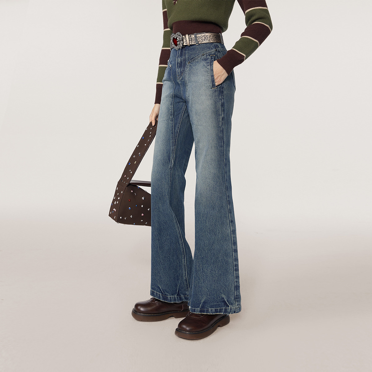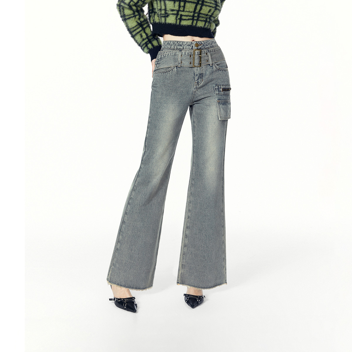 春秋复古时尚休闲百搭微喇牛仔裤女美式通勤长裤 262932