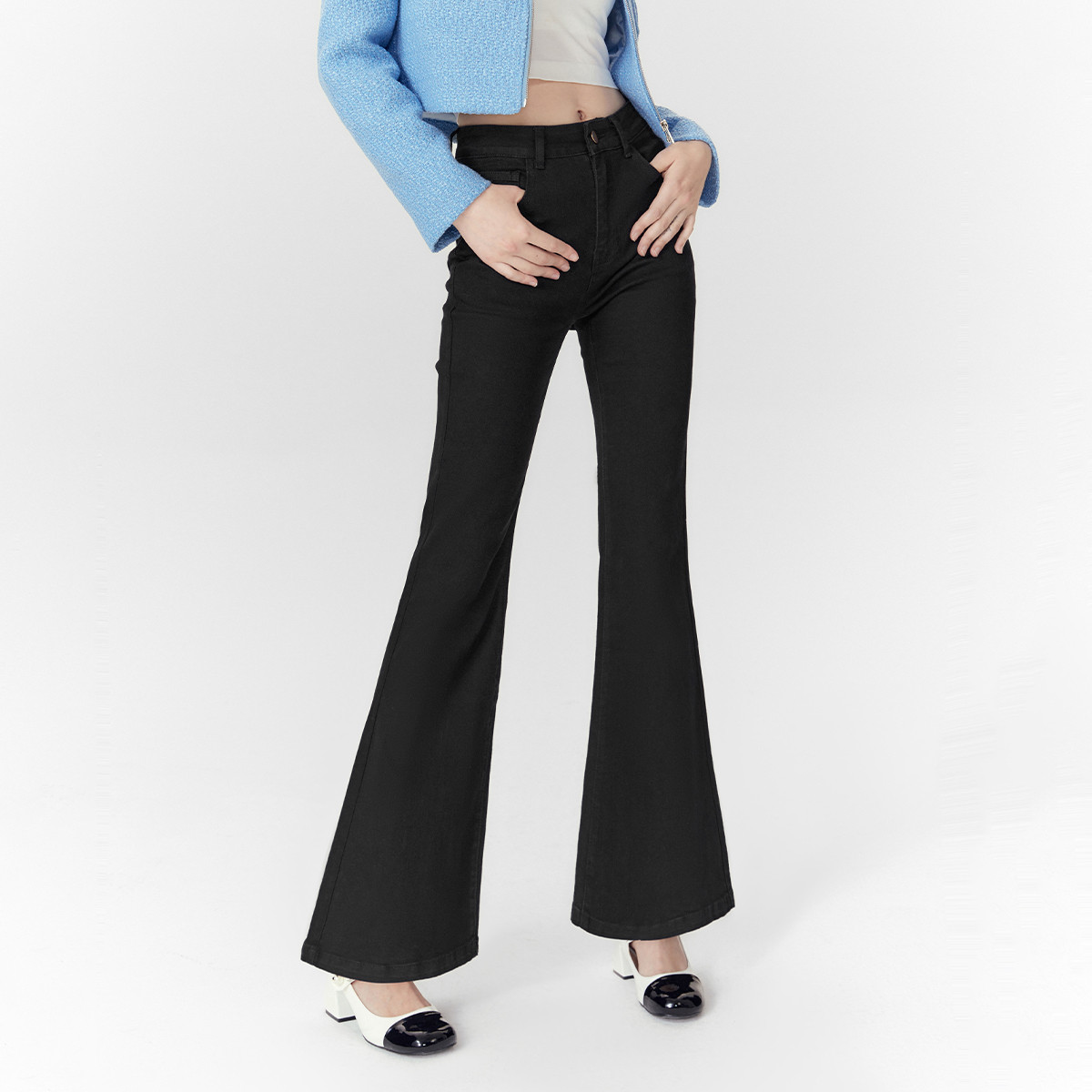 春秋高腰显瘦微喇复古牛仔长裤女小个子喇叭裤 184532