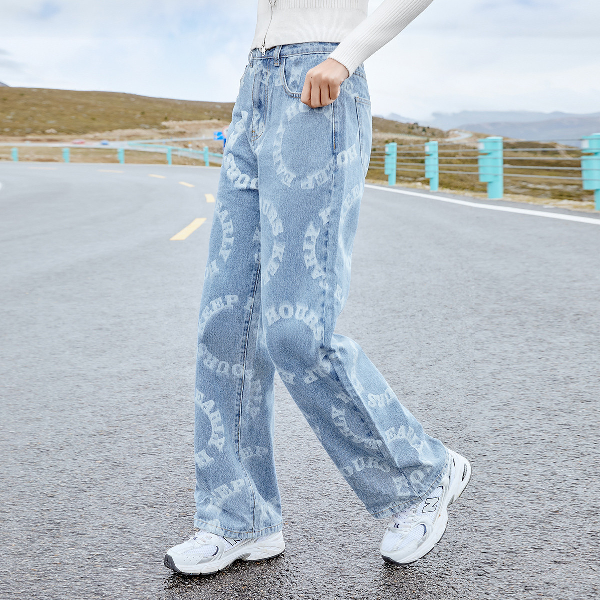 春秋美式高街复古阔腿牛仔裤女梨形身材宽松直筒裤子 369620