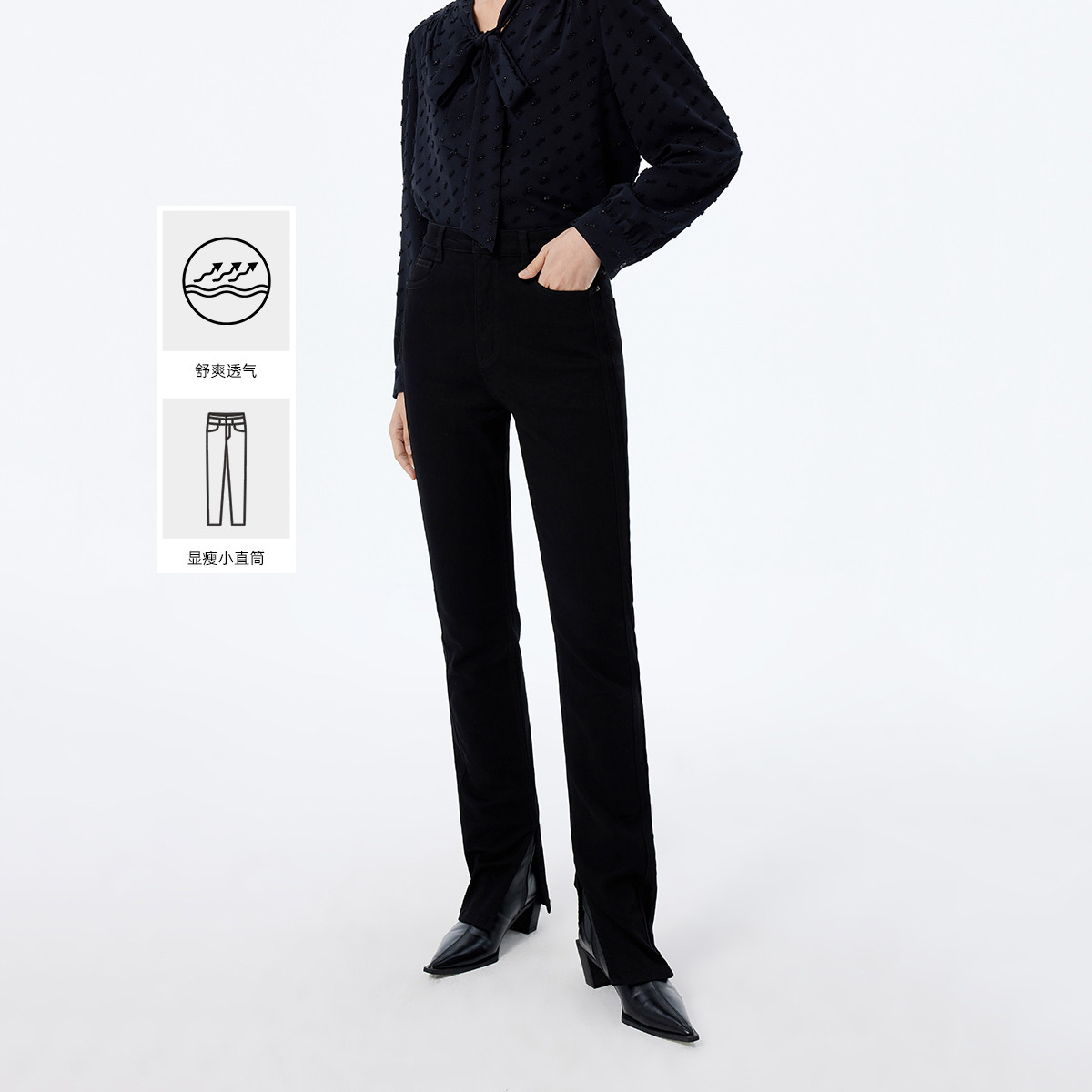春季裤子女春季开叉都市通勤牛仔裤显瘦百搭休闲铅笔裤小脚裤 593307
