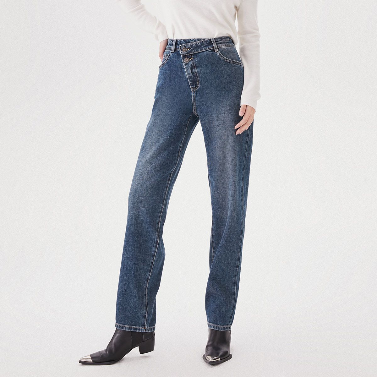 春秋直筒牛仔裤女时尚气质百搭显瘦微弹中腰长裤 279380