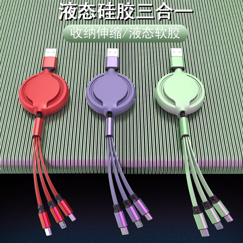 巴赫约翰数据线三合一充电线一拖三伸缩手机快充多头充电器华为苹果安卓typec 两头伸缩 红色,白色(下单备注颜色)