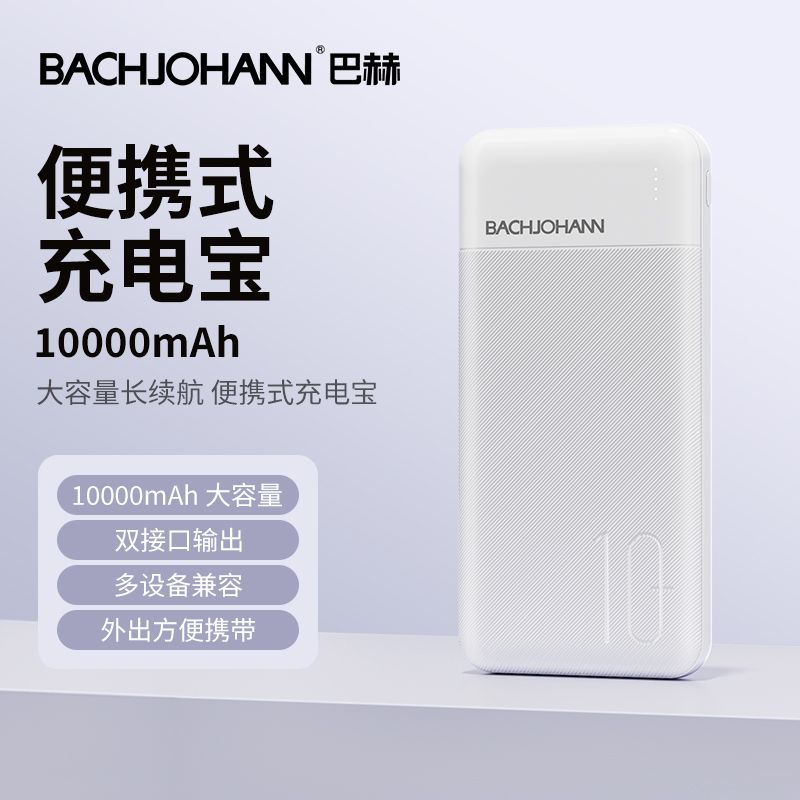 bach johann德国巴赫 DY-C01充电宝10000毫安时 双输入双输出 便携快充移动电源 白色