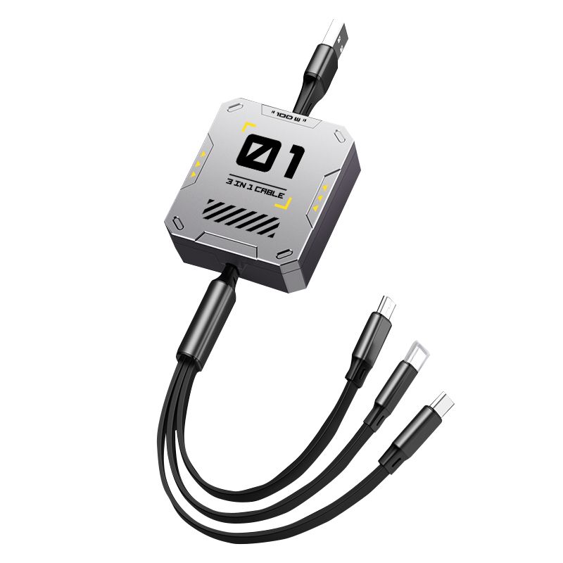 错山 机甲款三合一超级快充数据线Z-03黑灰色
