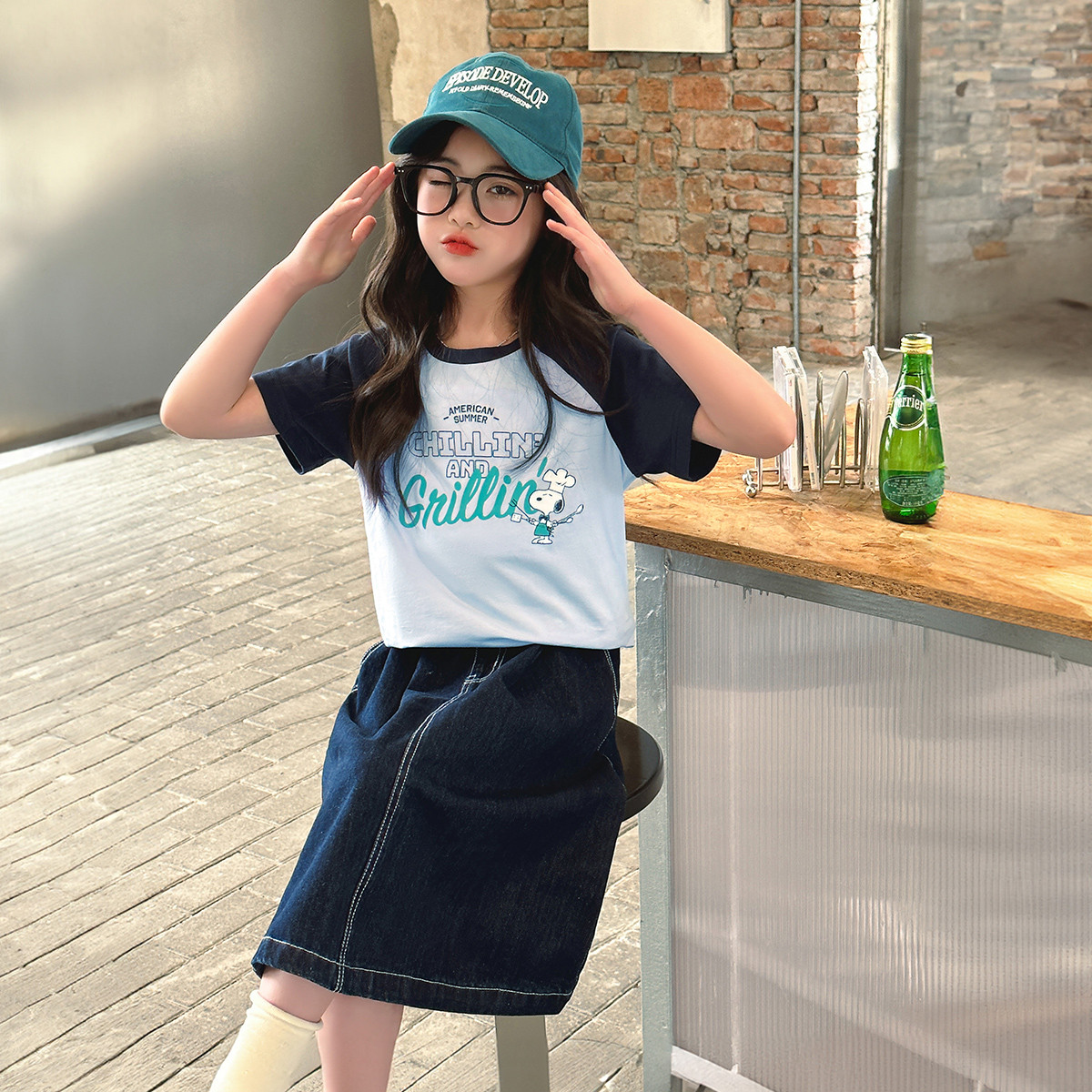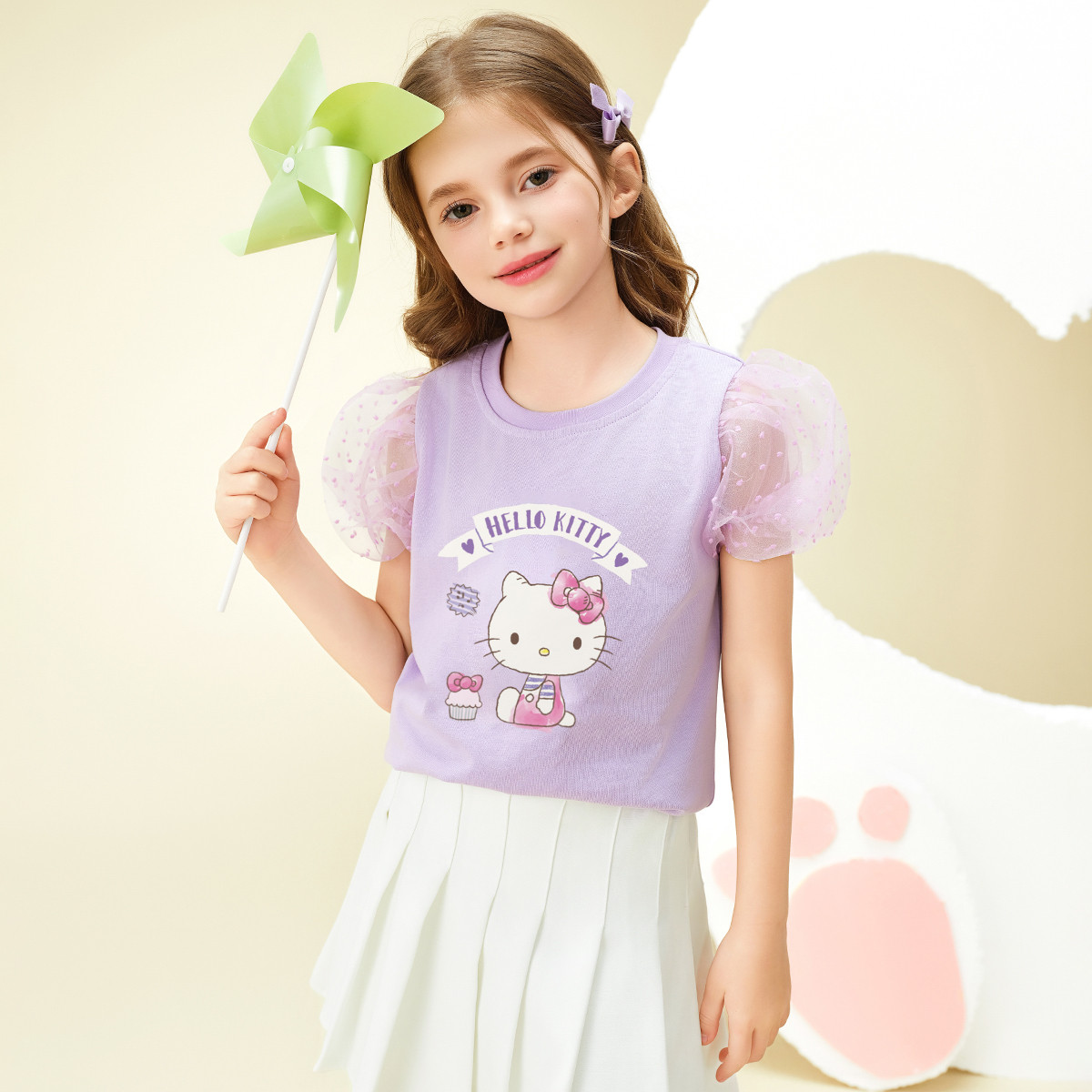【法式泡泡袖短袖上衣】2025款女童夏季T恤卡通中大童装 888158