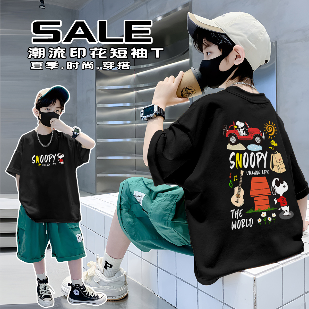 2025夏季男童纯棉短袖T恤时尚潮流中大童休闲宽松运动上衣 353119
