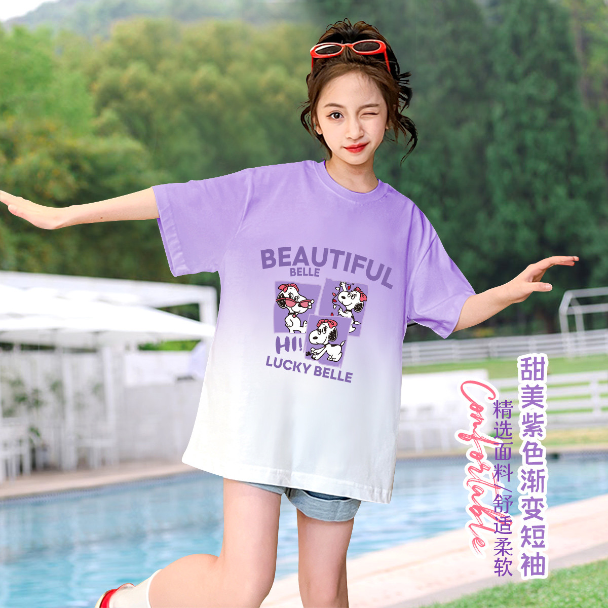 女童短袖t恤2025夏季甜美可爱渐变短袖舒适亲肤上衣中大童装 703455