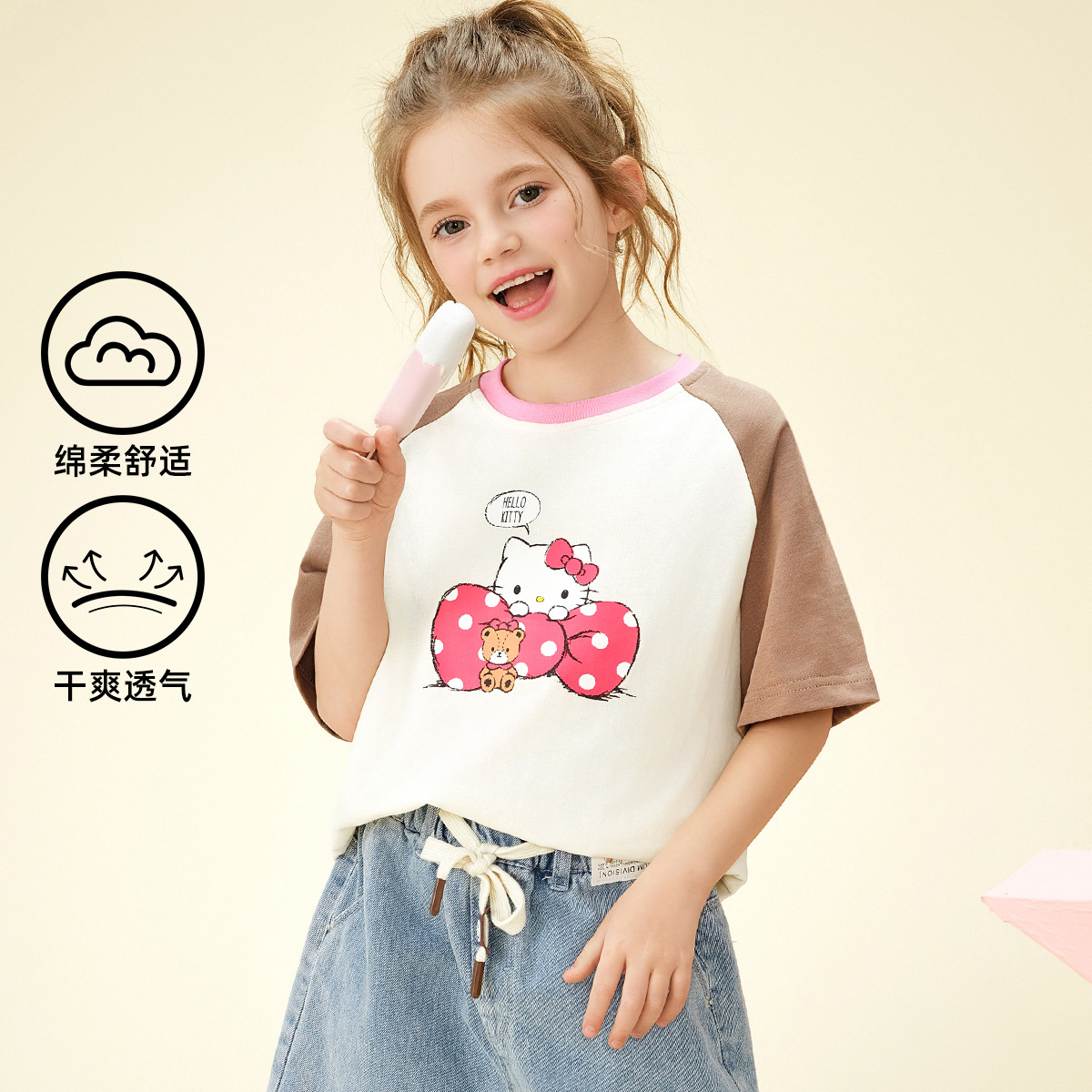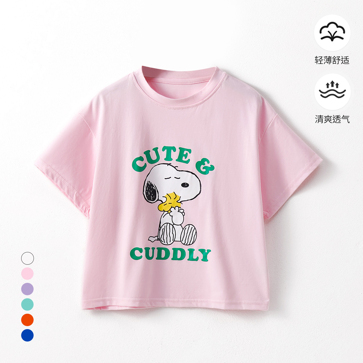 【5A级抗菌】玉桂狗联名女童短袖T恤2025夏儿童套头打底衫 953921