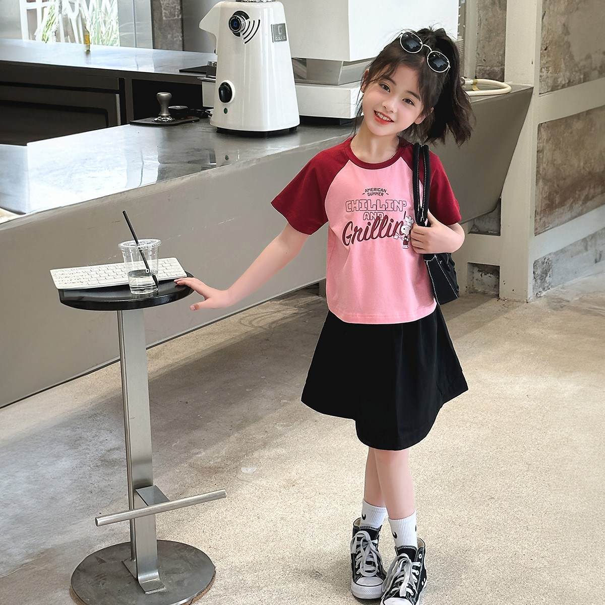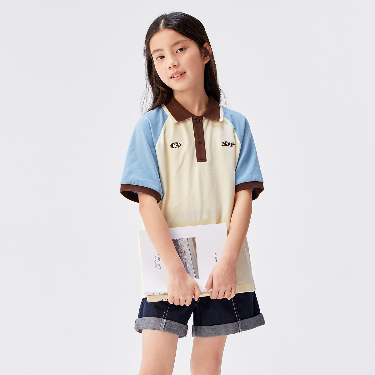 【撞色拼接短袖T恤】女童夏季2025款可爱简约风中大童装 639518