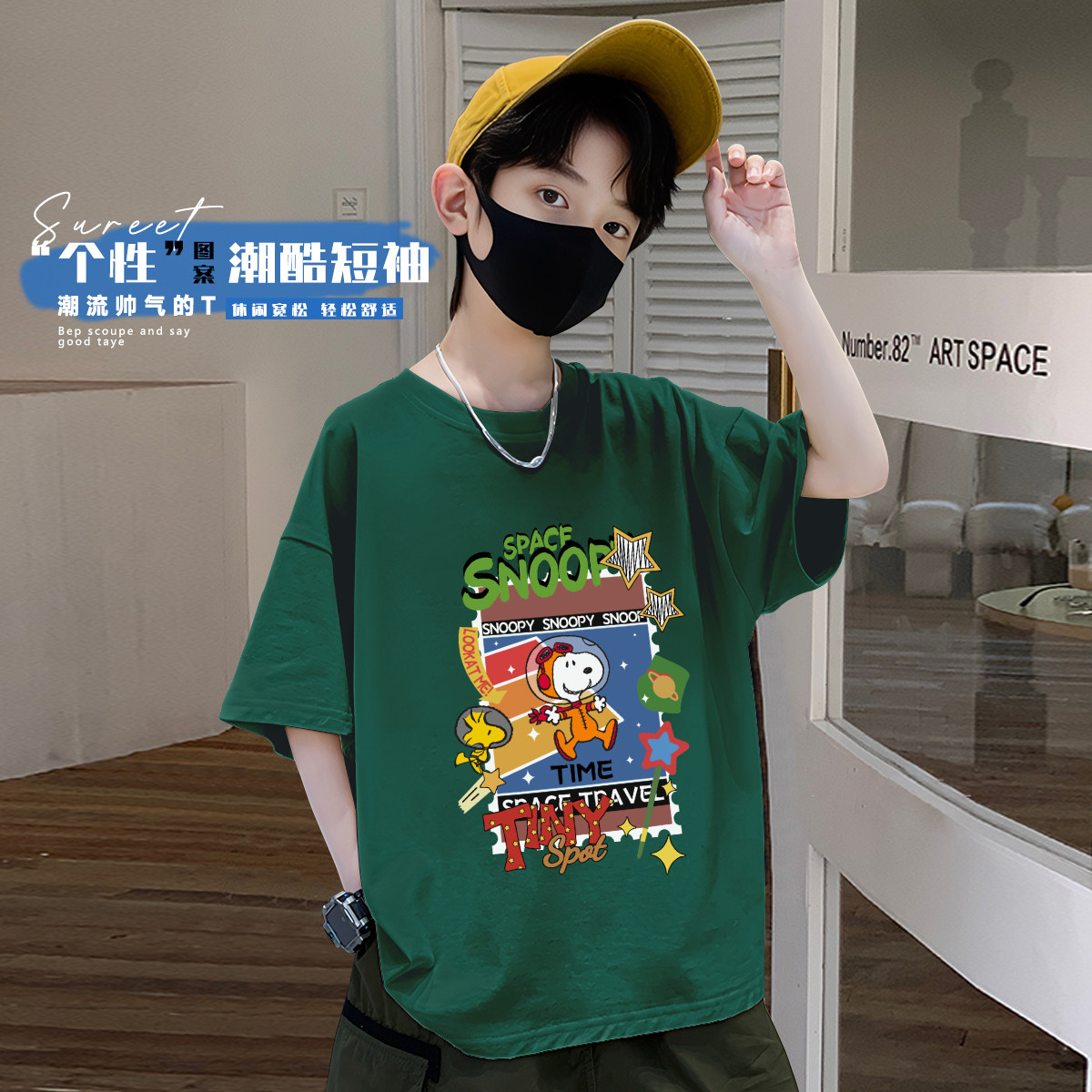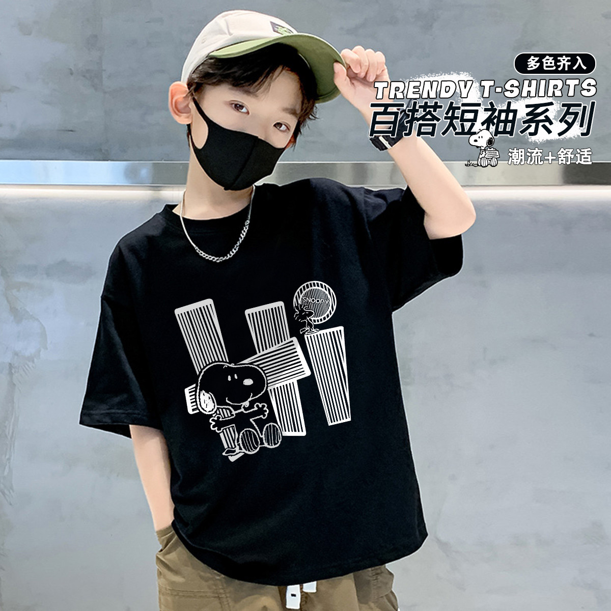 2025夏季男童纯棉短袖T恤时尚潮流中大童休闲宽松运动上衣 353119