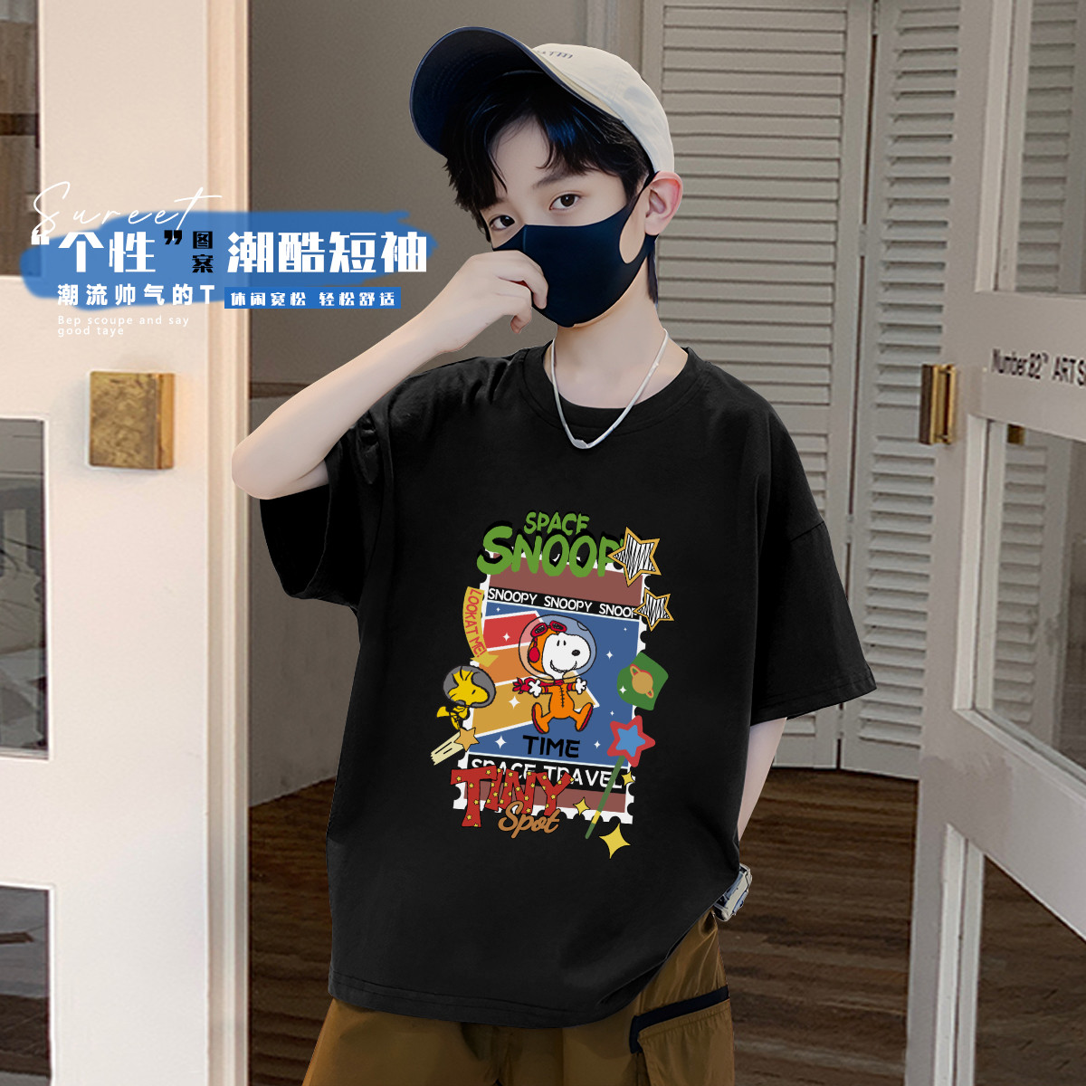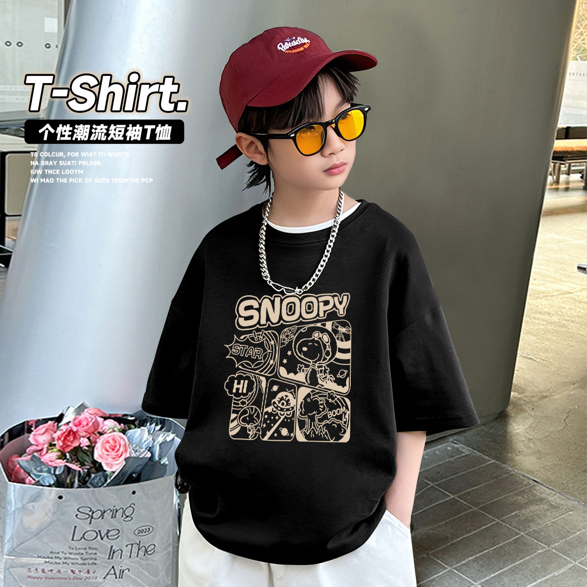 2025夏季男童纯棉短袖T恤时尚潮流中大童休闲宽松运动上衣 353119