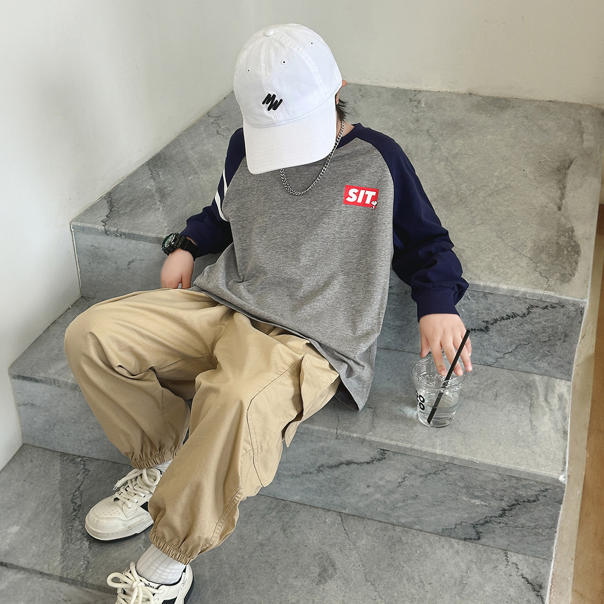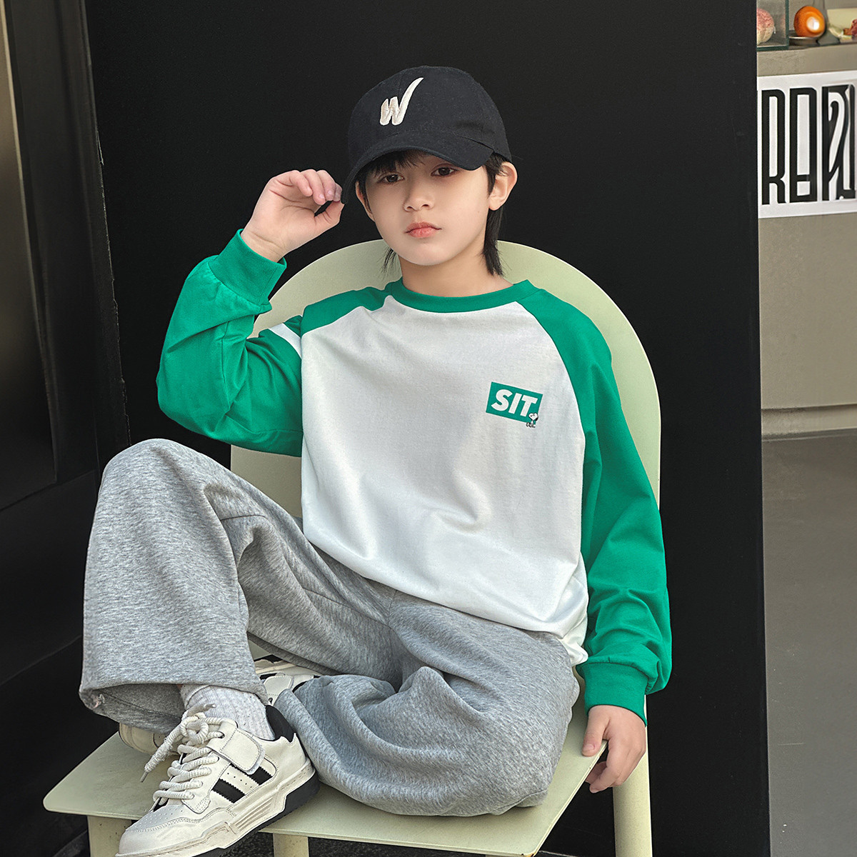 【撞色插肩袖】男童T恤春季中大童潮酷时尚百搭上衣儿童休闲T恤 154136