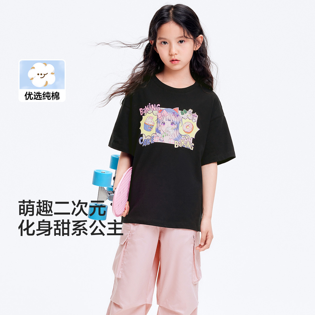 【纯棉&二次元印花】儿童短袖t恤夏大童女童打底衫 456133
