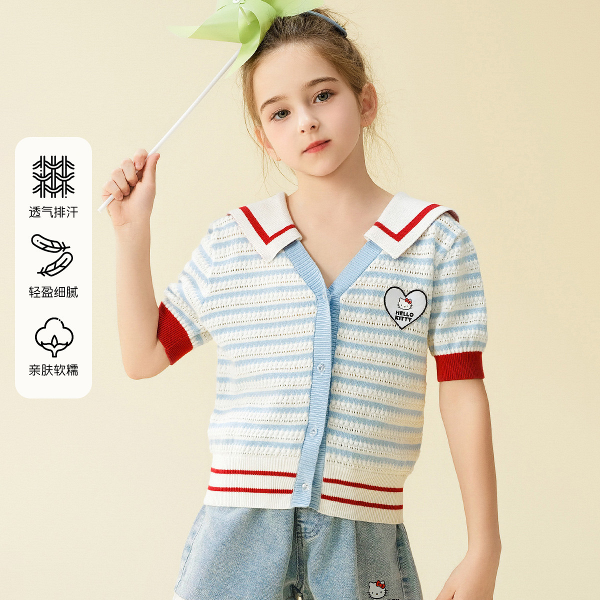 【学院风条纹毛线T】2025款女童夏季中大童装透气T恤衫 763038
