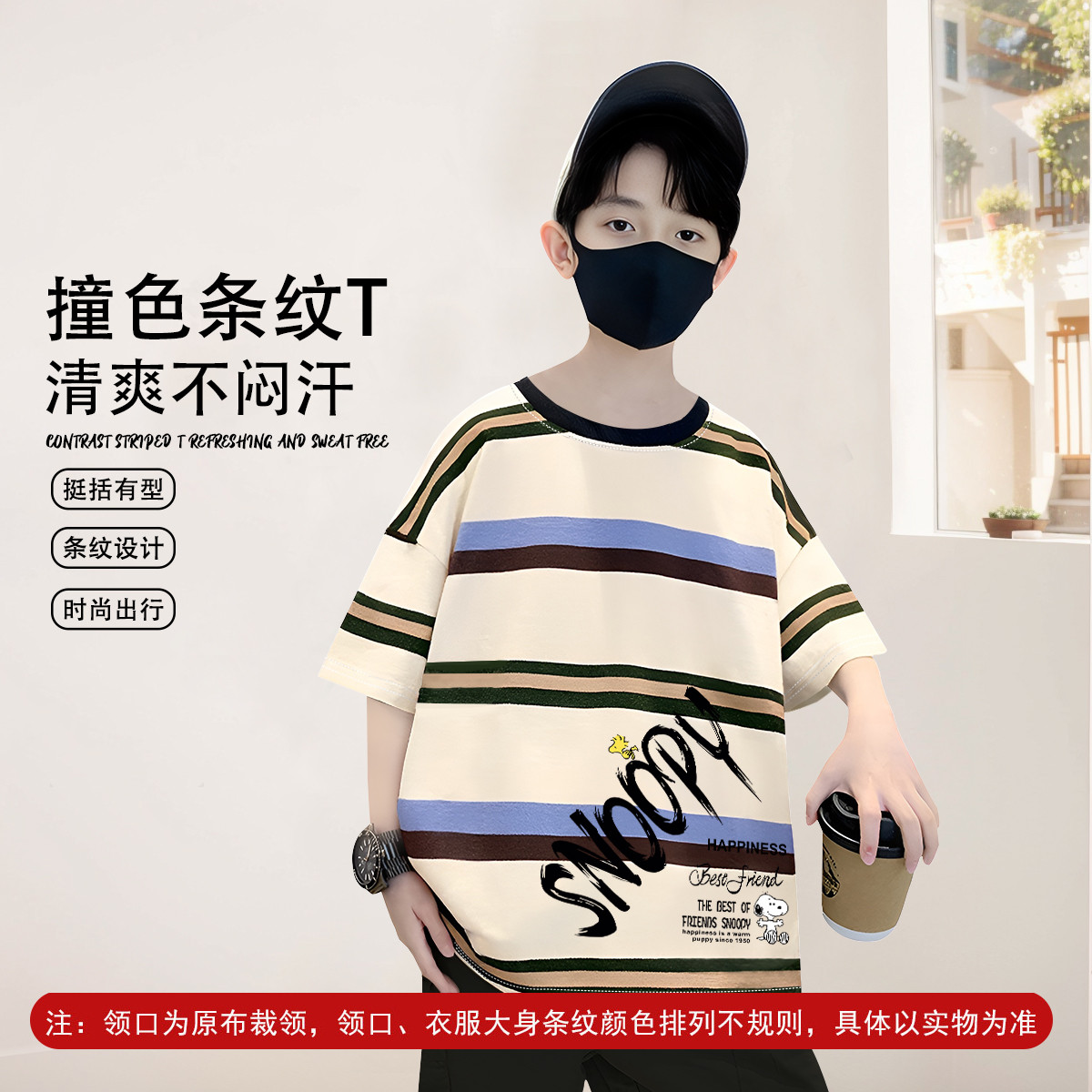 男童短袖2025夏季洋气卡通条纹T恤舒适亲肤透气中大童装 350559