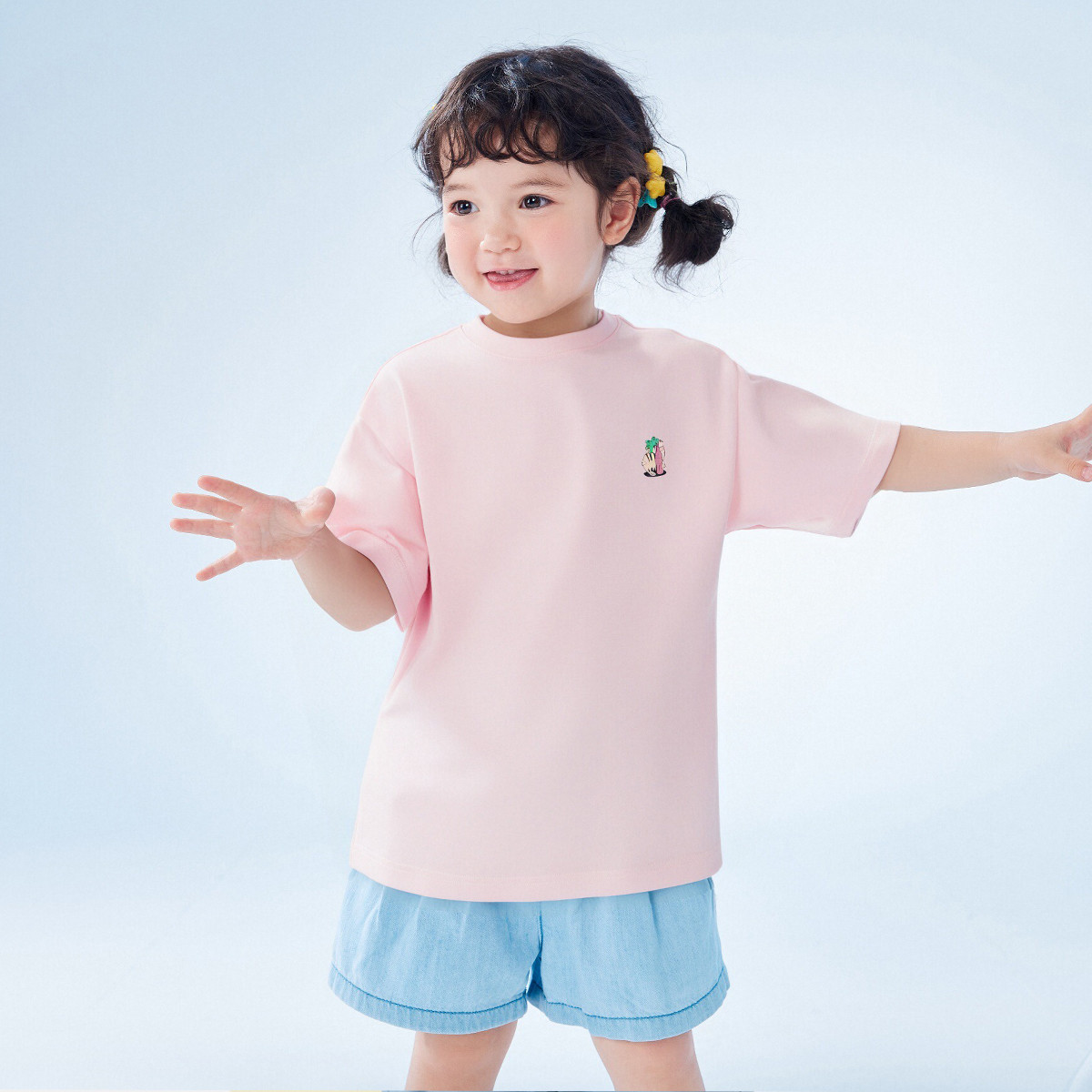 巴拉巴拉儿童短袖女童t恤夏装中大童波浪边飞袖甜美印花上衣时尚 804165