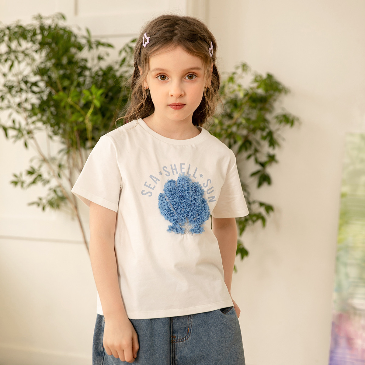 【印花短袖T恤】春夏季女童宽松上衣女孩时尚洋气儿童短袖上衣 749067