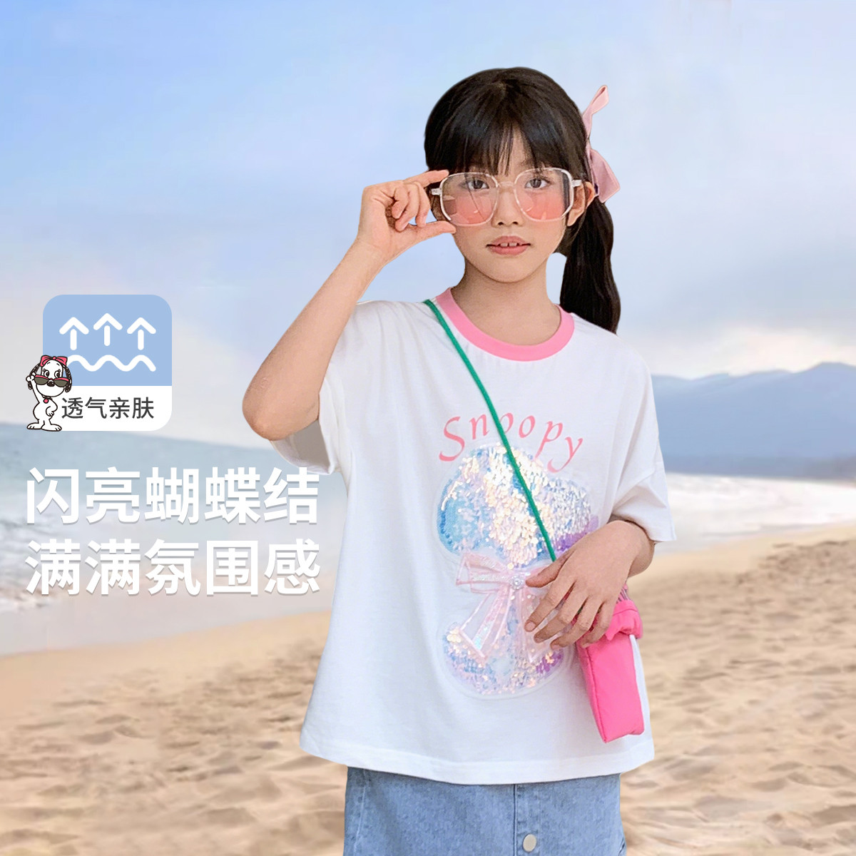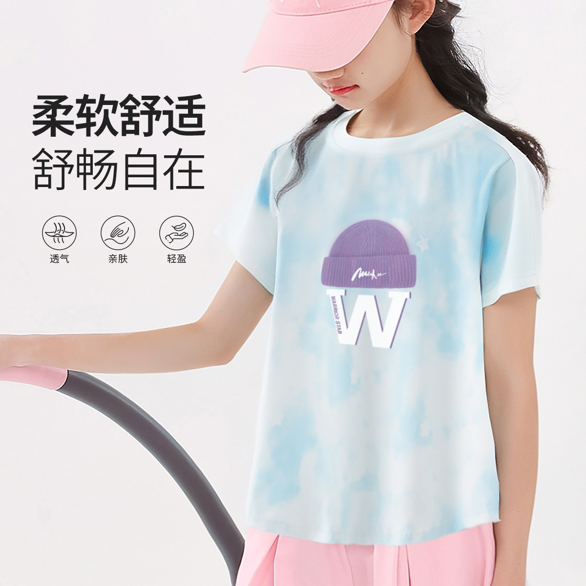 速干环保女童t恤儿童短袖夏季薄款女孩大童印花上衣 224773