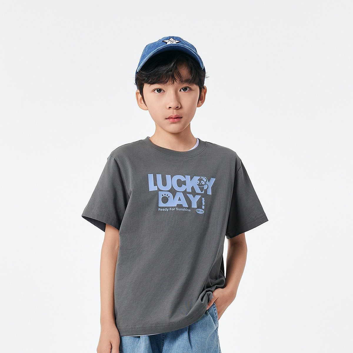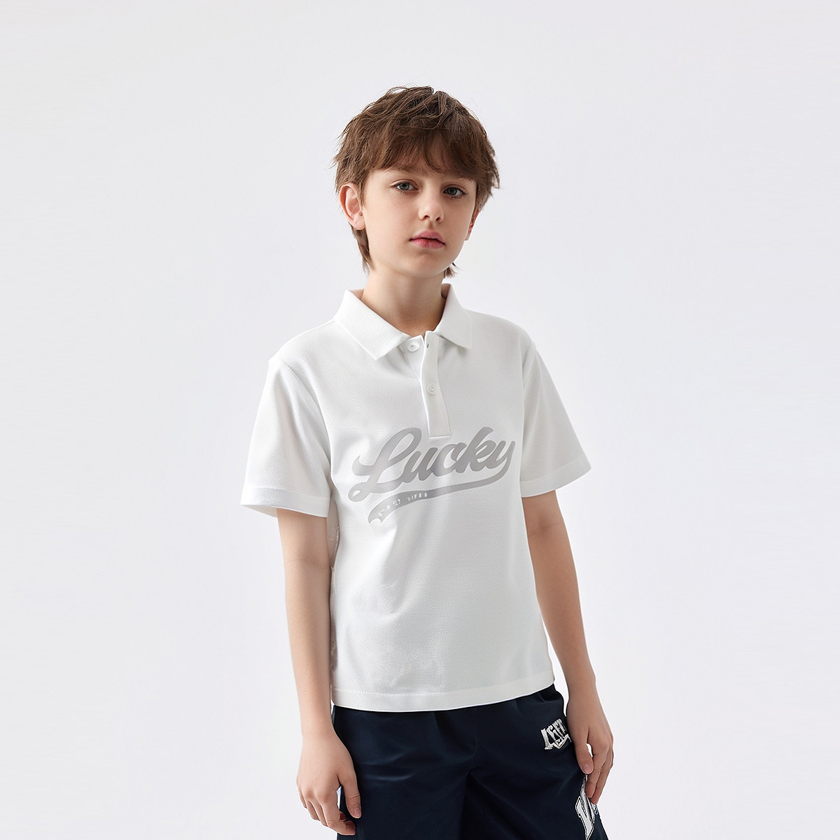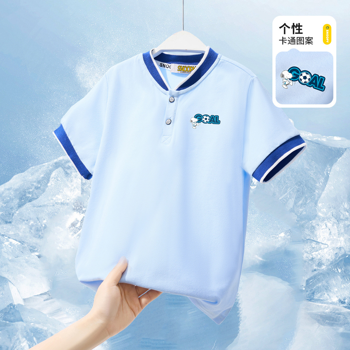 凉感抑菌儿童T恤男童短袖夏装上衣半开襟设计校园风字母印花童装 734213