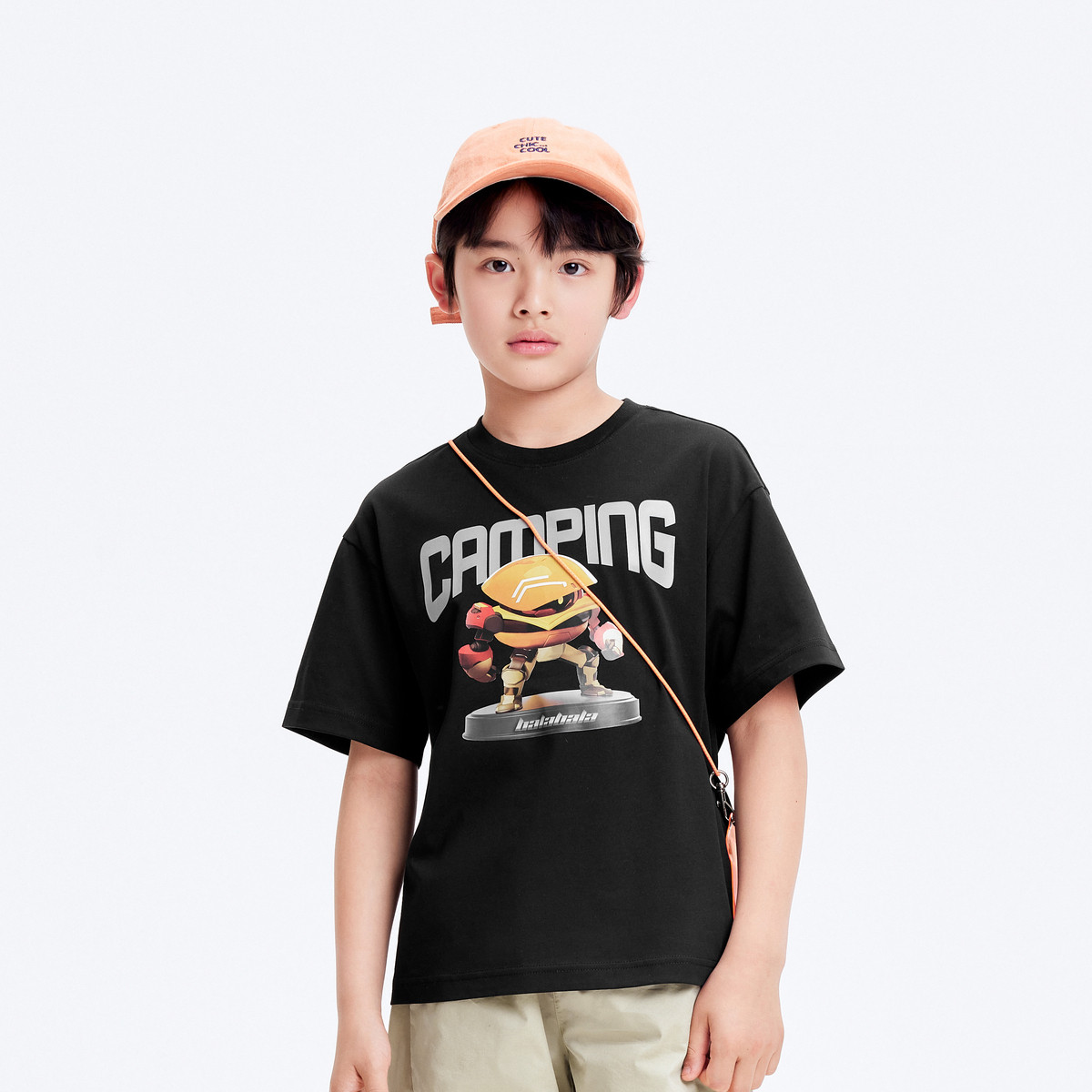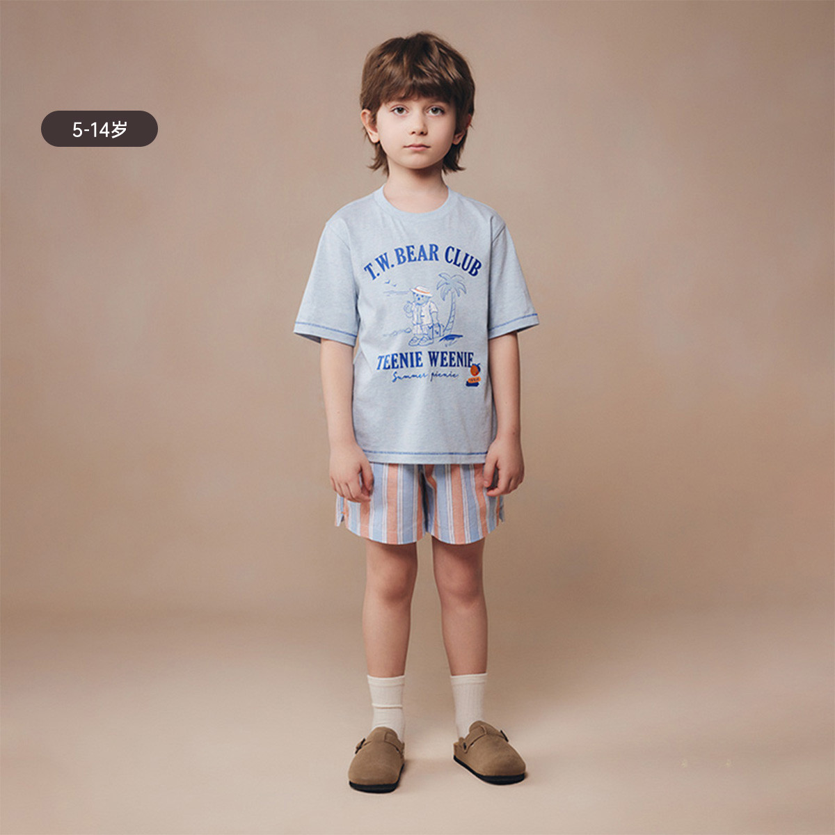 小熊童装夏季男童度假风纯棉圆领印花T恤 340225